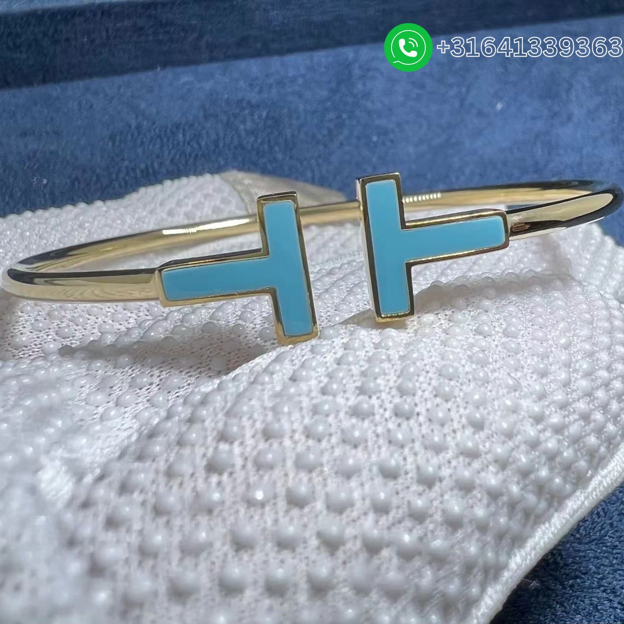 This modern bracelet is enhanced with turquoise, one of the first stones used in jewelry design and a favorite stone of Tiffany designers for over a century. The natural formation of the stone creates subtle differences in appearance, ensuring each piece is as unique as its wearer. As multifaceted as it is iconic, the Tiffany T collection is a tangible reminder of the connections we feel but can’t always see. Wear this sleek design in a mixed-metal bracelet stack for a bold look. Metal:18k yellow gold Gemstones: turquoise Size medium Fits wrists up to 6.25″ Our 18k white gold is plated with rhodium to maintain its brilliance Product number:64028863 Price: Please contact us vis WhatsApp or Email for factory direct selling price. Whatsapp: +31641339363 We offer 1:1 highest quality jewelry customized,and factory direct selling,only cost 30%~60% of the original cost of these popular brands. We have more than 15 years experience focus on luxury jewelry making,and all items are made in real 18K yellow gold,white gold,pink gold,platinum,gemstones and genuine diamond with GIA certificate. What’s more,all items are come with top workmanship,good service,factory price,original packages and free shipping. It is easy for you to customize your own luxury jewelry with us: Send us the styles or products links you like, no matter whether it is a Cartier LOVE bracelet, a Bvlgari Serpenti Ring, Van Cleef & Arpels Magic Alhambra necklace, or Graff Bracelet, even your own design. And let us know your desired sizes. Pay 50% as deposit, or full payment. The balance needs to be cleared before shipping. Wait about 7 days for the production. For some complicated styles, it takes longer time. We take pictures of the finished jewelry for your confirmation, and get the balance payment. Jewelry ship to you. A tracking number will be provided. It takes about 3 to 5 days for you to get the jewelry.