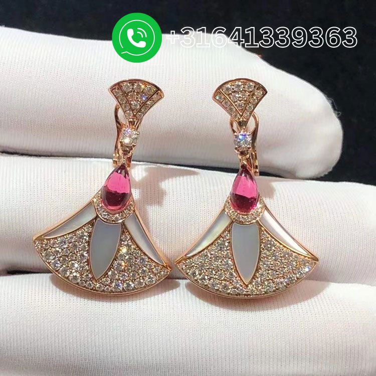 Bulgari 18k Rose Gold 2.21cttw Diamond And Mother Of Pearl Divas Dream Drop Earrings