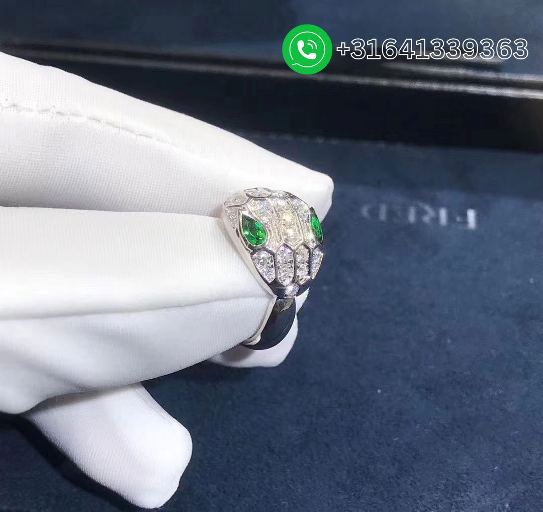 Bulgari 18K White Gold Diamond Emerald Serpenti Seduttori Ring