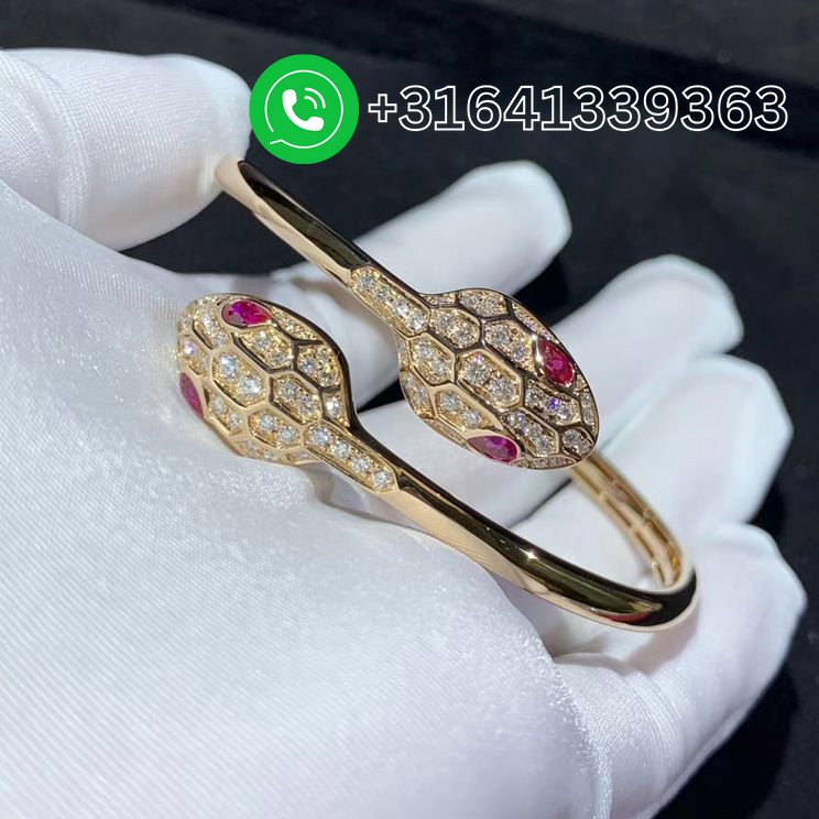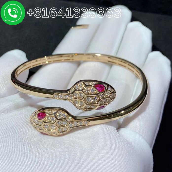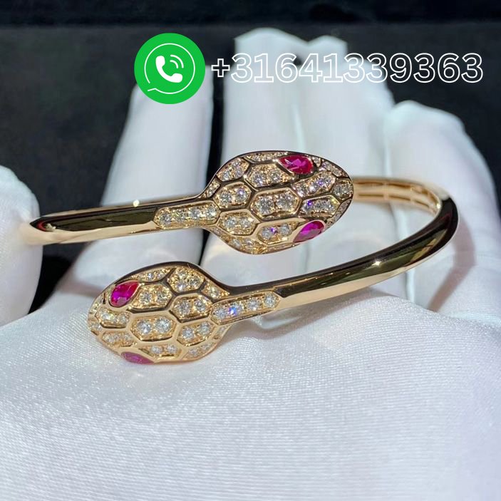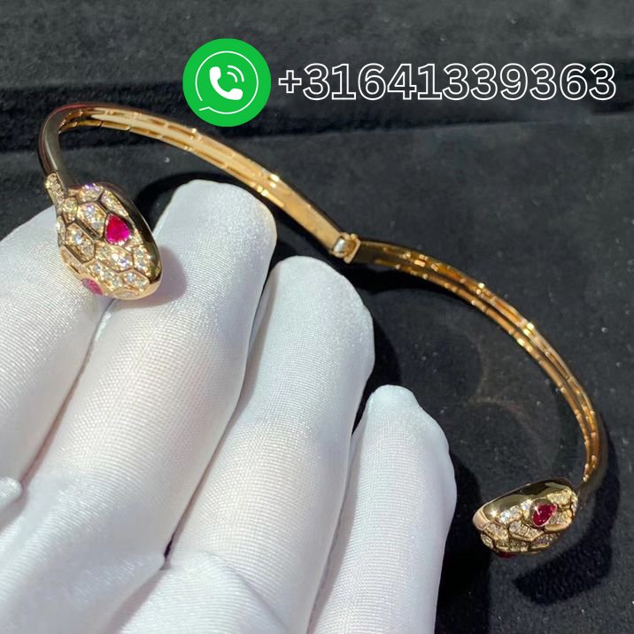 Bulgari Serpenti 18 kt rose gold set with rubellite eyes and pavé diamonds bracelet Ref.: 356504