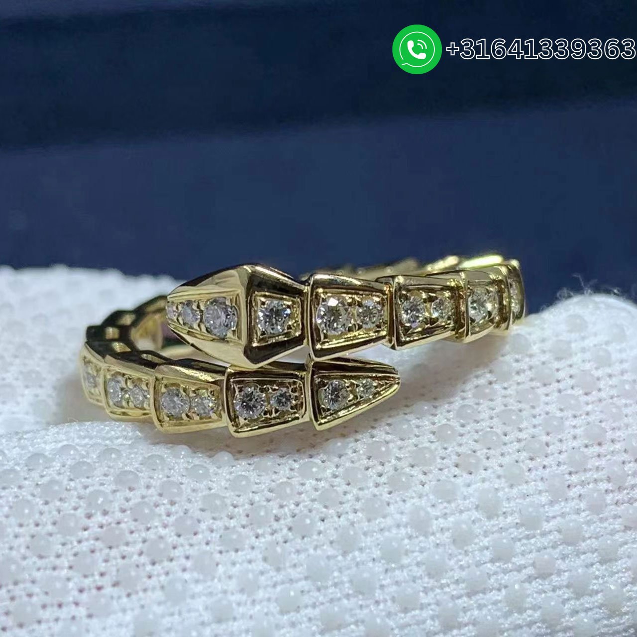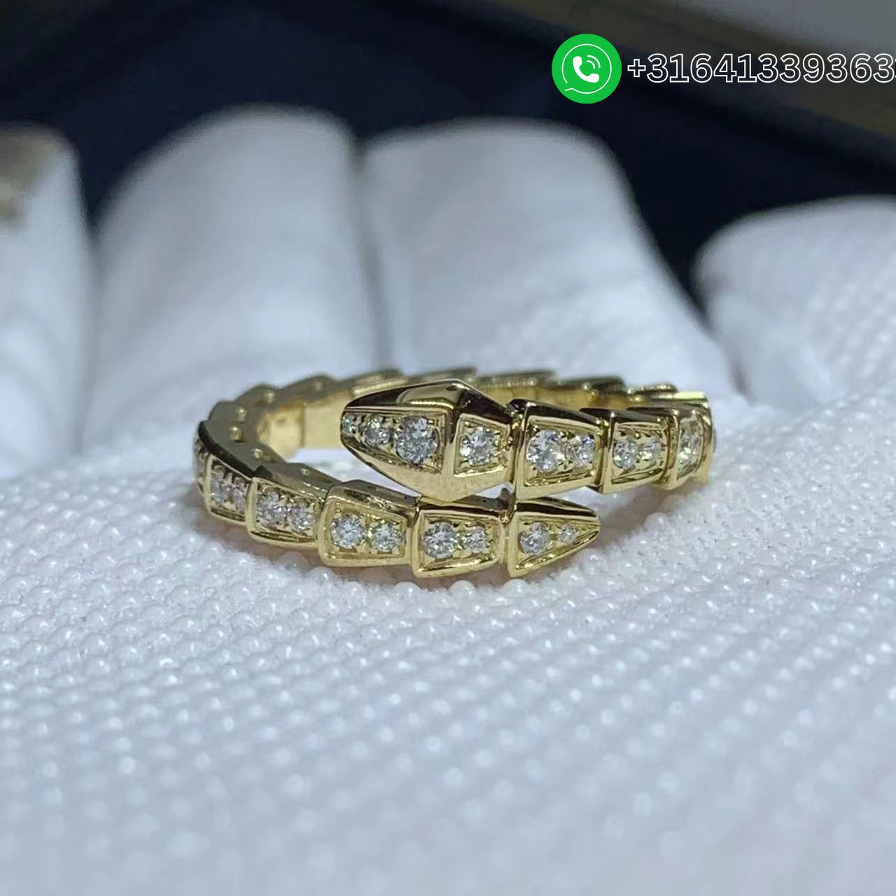 In a tribute to its spirit animal, Bulgari captures the power of seduction in the Serpenti Viper ring, camouflaging sensuality and temptation with a hypnotic design. Sophisticated and glamorous, the jewel coils around the finger striking with the precious beauty of the scales and with the distinctive sinuosity of the snake. Serpenti Viper 18 kt white gold ring set with pavé diamonds. Metal: 18k yellow gold Diamonds (Carats): 0.73 Ref.: 354711 Factory Wholesale Price: Whatsapp for price Whatsapp: +31641339363 We Promise That: The jewelry we offer is real 18k gold and real diamonds. Our customer service is professional jewelry sales staff to provide our customers with professional jewelry ordering service. We promise to inform the production department immediately after ordering and customer service will follow up regularly. Our customer service staff will patiently answer your questions until you are satisfied with the merchandise. Our success is due to our incredible passion for what we do and we have built a great reputation with our customers around the world. We are proud to have worked with some of the most famous celebrity, luxury jewelers. Not only do we offer truly custom products, but we also offer an unparalleled level of customer service. Buying jewelry and watches through ManyLuxe is a very important investment and we strive to provide a true VIP experience for all of our customers. Once you work with us, you will be our customer for life.