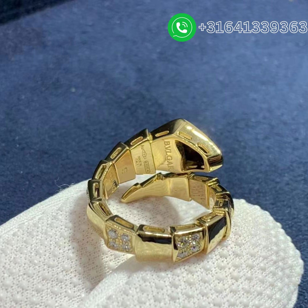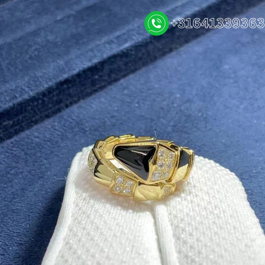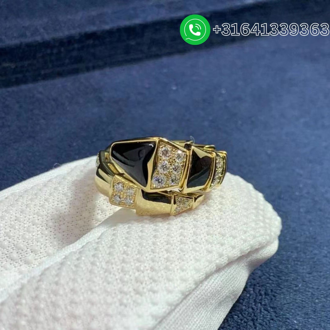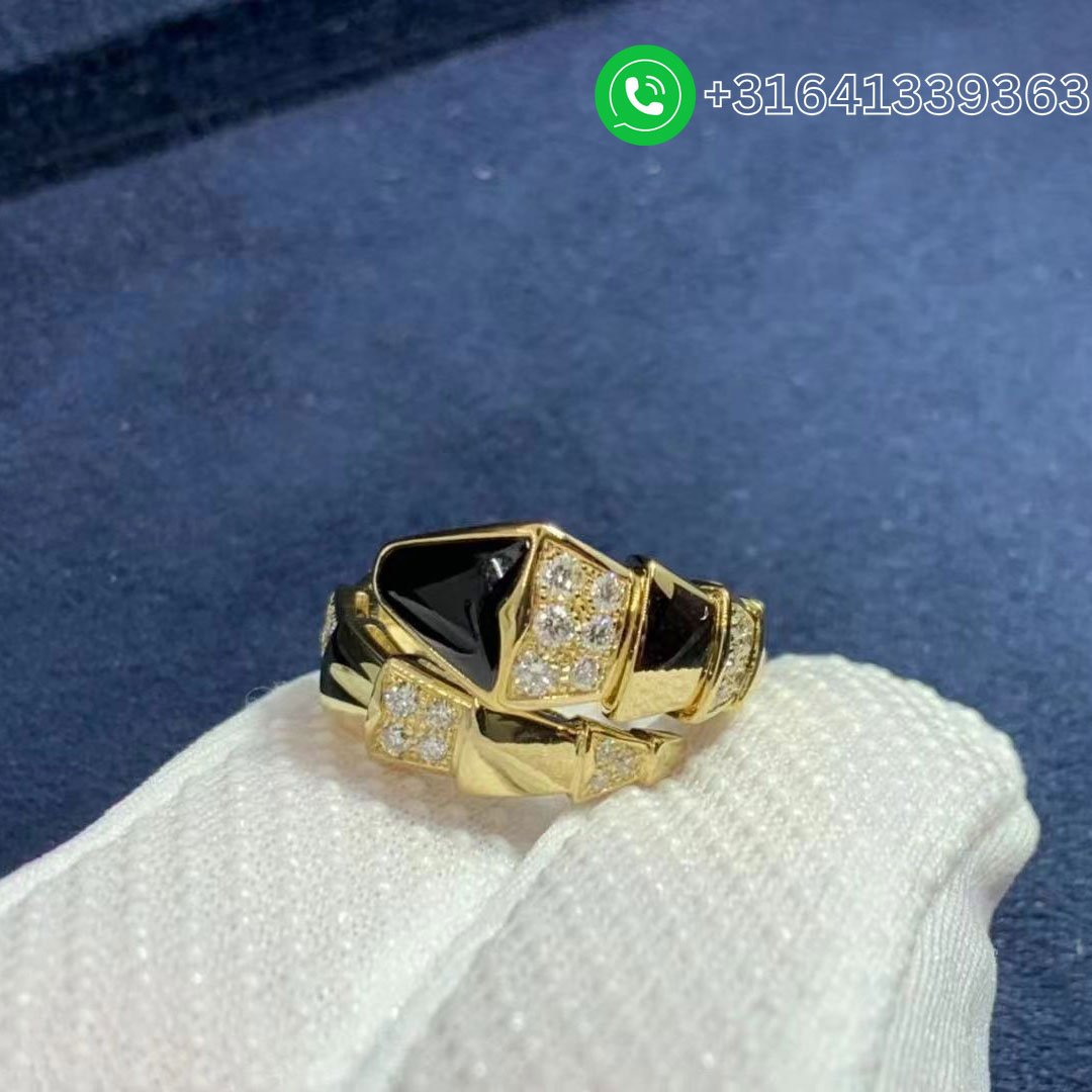 Bulgari Serpenti Viper 18K Yellow Gold Onyx And Demi Pavé Diamonds One-Coil Ring