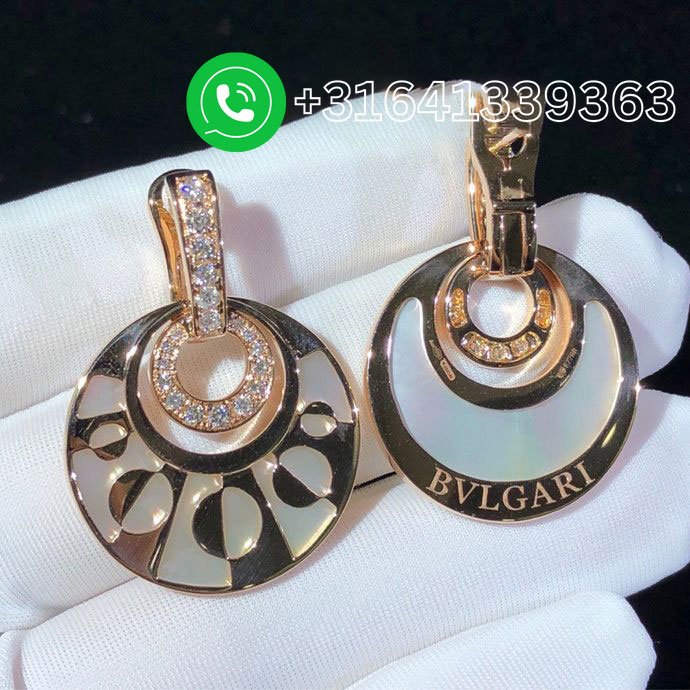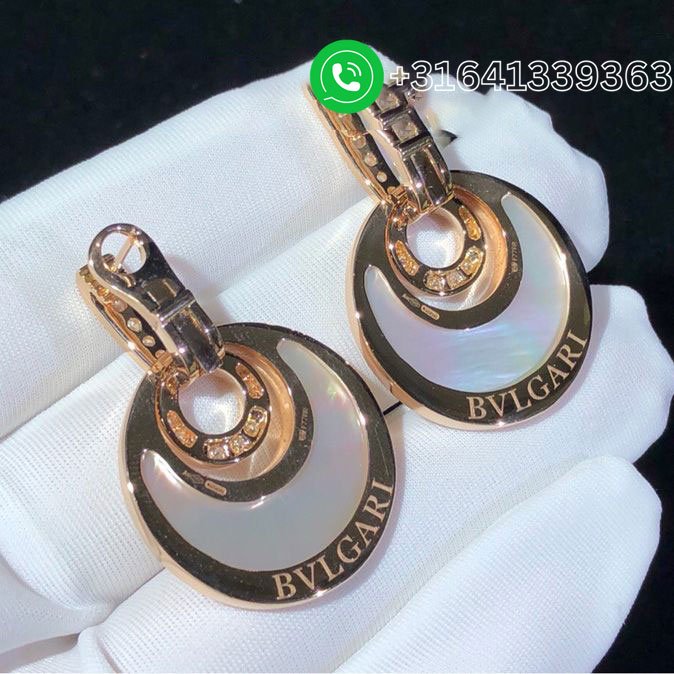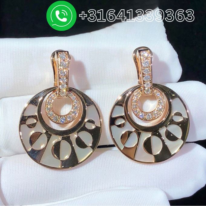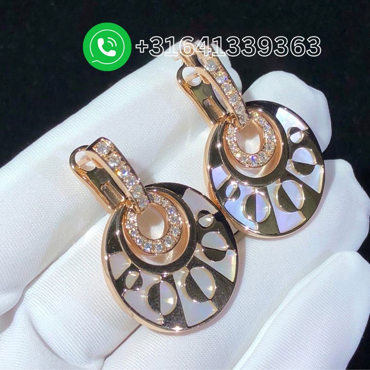 Bvlgari 18k Rose Gold Diamond Intarsio Mother-of-Pearl Earrings OR855959