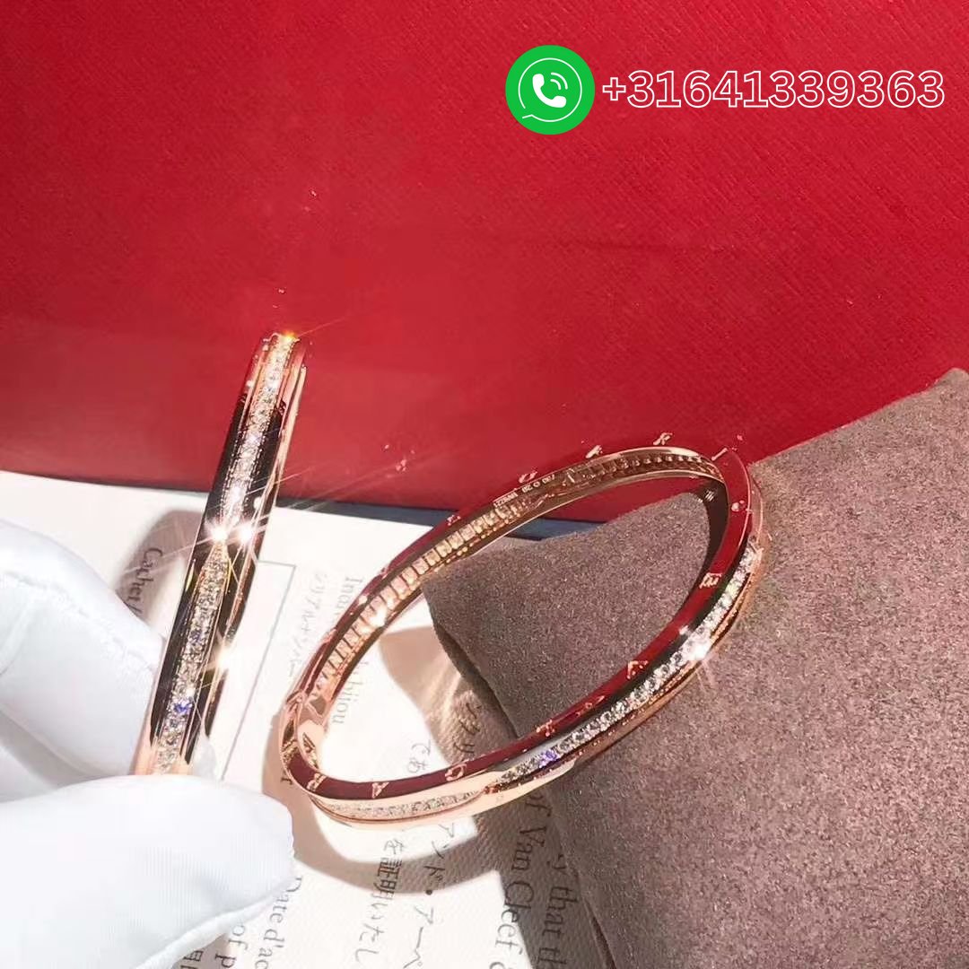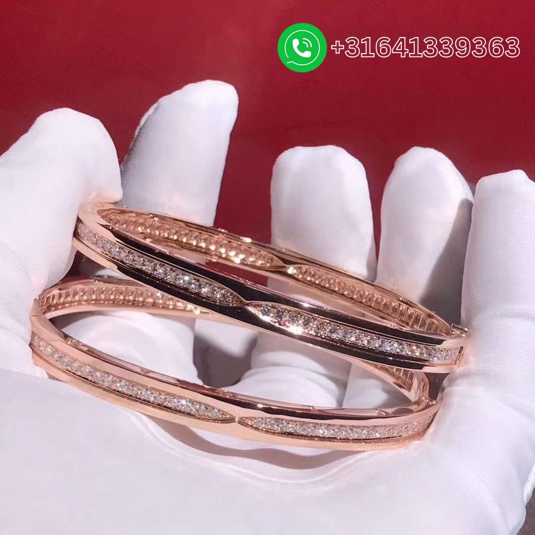 Drawing its inspiration from the most renowned amphitheater in the world, the Colosseum, B.zero1 is a groundbreaking statement of Bvlgari’s creative vision and a true icon of Italian design. Challenging the very essence of jewelry aesthetics, its distinctive spiral is a metaphor for the harmony of past, present and future – reflected in the magnificence of the Eternal City – and the emblem of the pioneering spirit of the collection. B.zero1 18 kt rose gold bracelet set with pavé diamonds on the spiral.