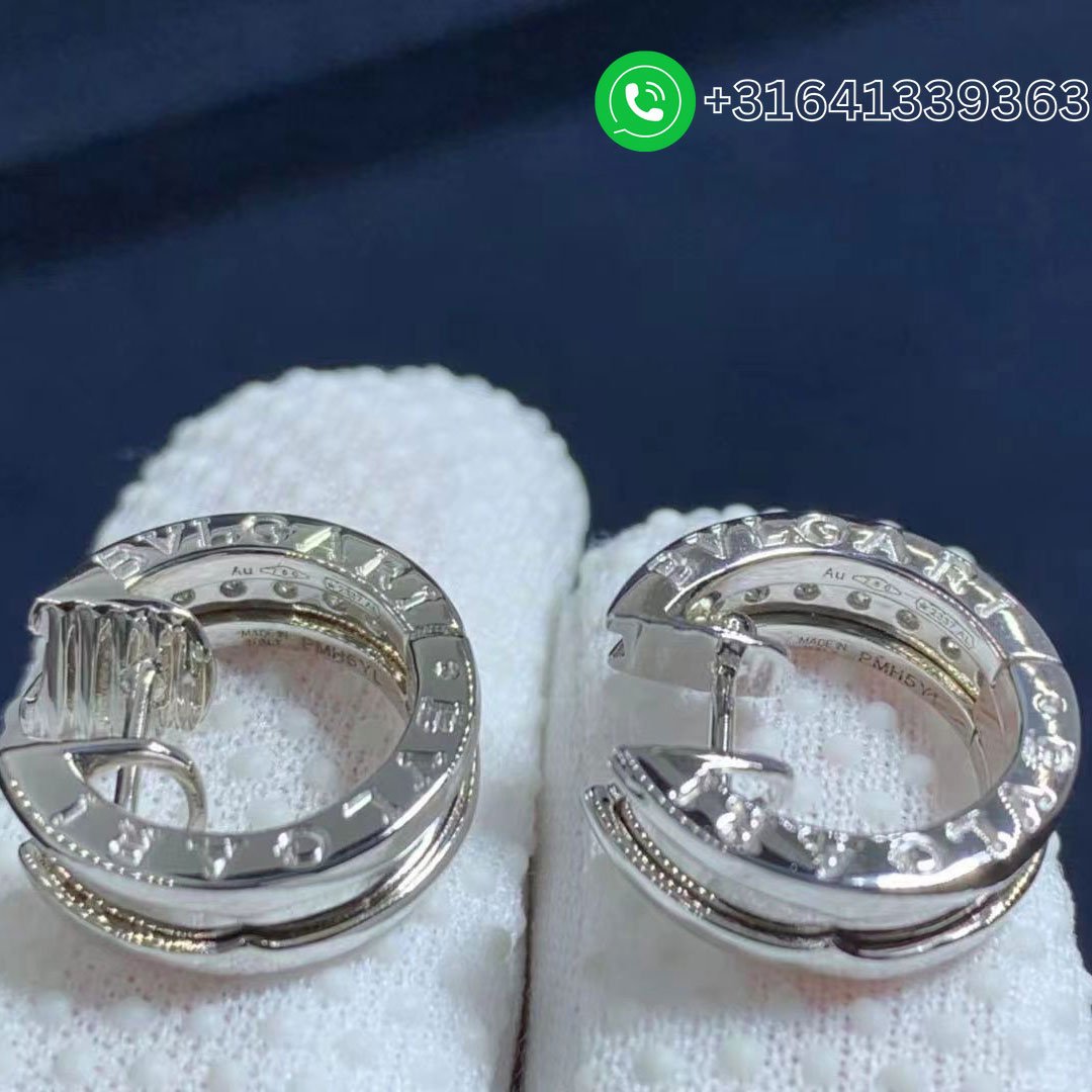 Bvlgari B.zero1 Small 18 Kt White Gold Set with Pavé Diamonds on the Spiral Hoop Earrings