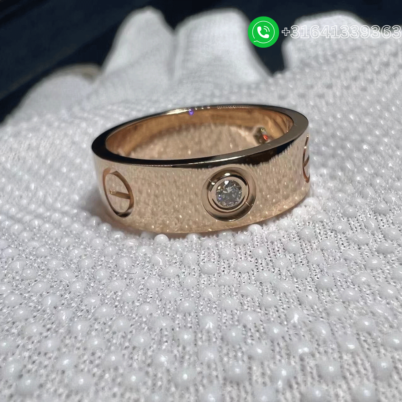 A gorgeous Cartier 18k Rose Gold 3 Diamonds 5.5MM LOVE Ring. This Classic Cartier Love ring features 18k rose gold construction with three diamonds. The LOVE ring’s design is instantly recognizable as a Cartier piece and is truly and timeless classic. Metal: 18k rose gold (Weight is 9.5g ) Diamonds: 3 brilliant-cut diamonds 0.22ct Band width: 5.5mm REF.: B4087500 Price: Please contact us via WhatsApp Whatsapp: +31641339363 We offer 1:1 highest quality jewelry customized,and factory direct selling,only cost 30%~60% of the original cost of these popular brands. We have more than 15 years experience focus on luxury jewelry making,and all items are made in real 18K yellow gold,white gold,pink gold,platinum,gemstones and genuine diamond with GIA certificate. What’s more,all items are come with top workmanship,good service,factory price,original packages and free shipping. It is easy for you to customize your own luxury jewelry with us: Send us the styles or products links you like, no matter whether it is a Cartier LOVE ring, a Bvlgari Serpenti Ring, Van Cleef & Arpels Magic Alhambra necklace, or Graff Bracelet, even your own design. And let us know your desired sizes. Pay 50% as deposit, or full payment. The balance needs to be cleared before shipping. Wait about 7 days for the production. For some complicated styles, it takes longer time. We take pictures of the finished jewelry for your confirmation, and get the balance payment. Jewelry ship to you. A tracking number will be provided. It takes about 3 to 5 days for you to get the jewelry.