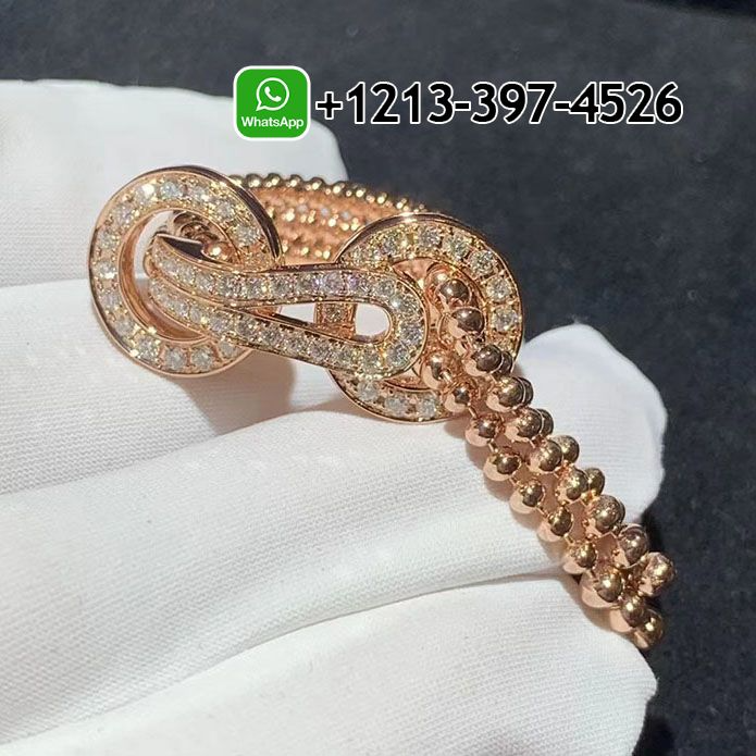 This Cartier 18K Rose Gold Diamond Tassels Agrafe Ring is crafted of 18 karat pink gold and features a beaded band, and buckle embellishment with pave set round brilliant cut diamonds.