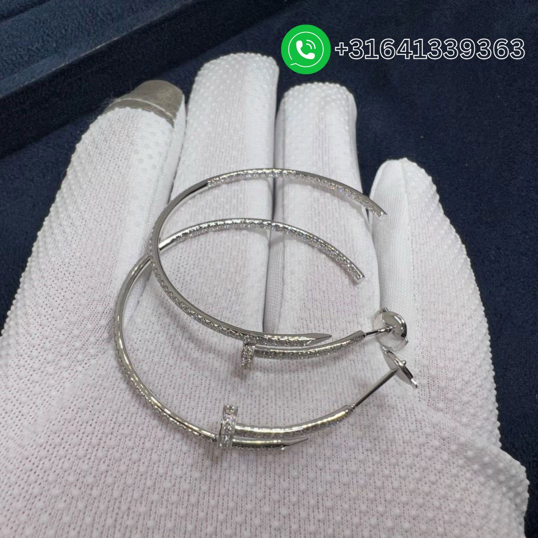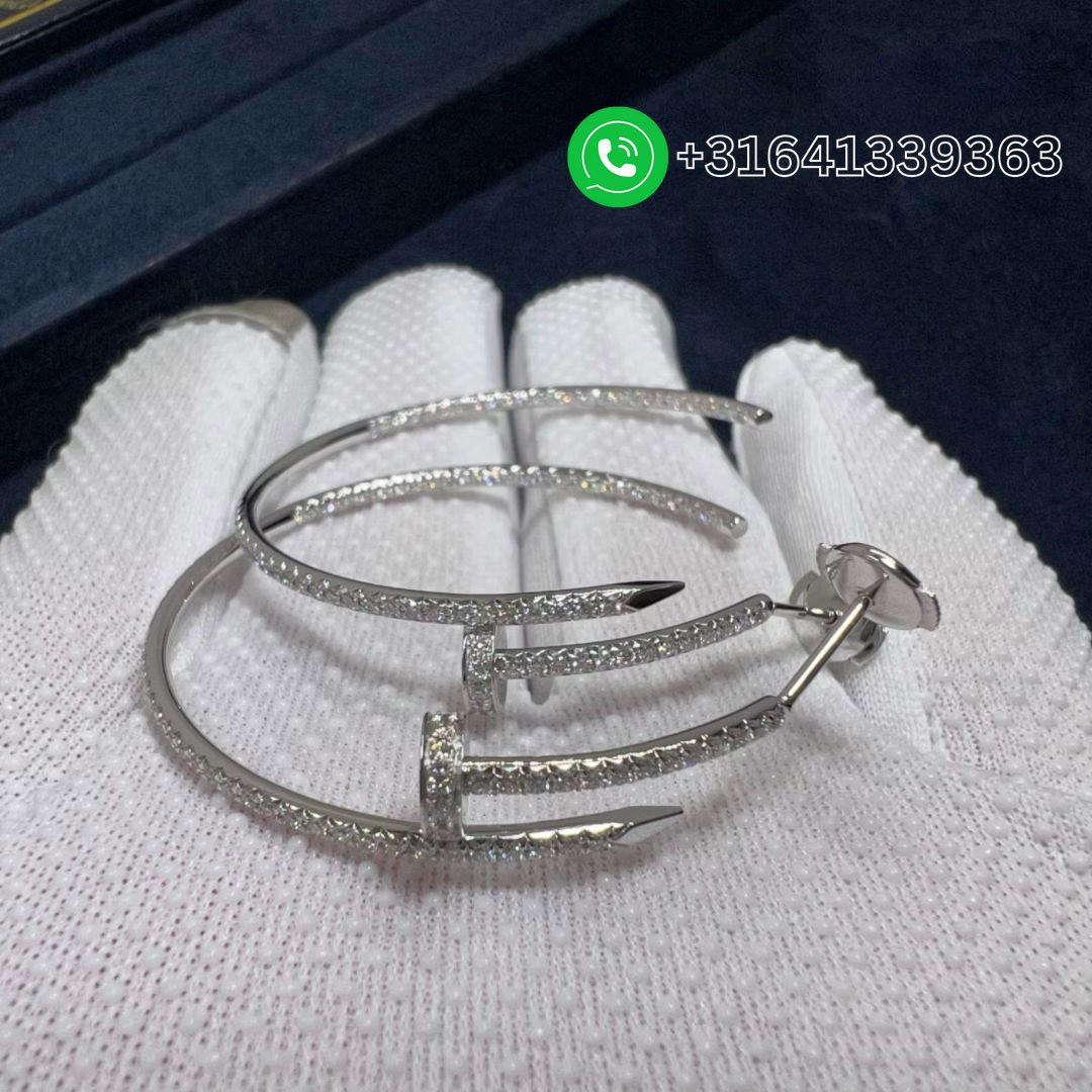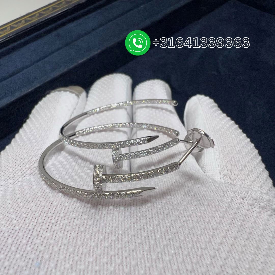 Cartier 18k White Gold Juste Un Clou Pave Diamond Large Nail Hoop Earrings N8515008