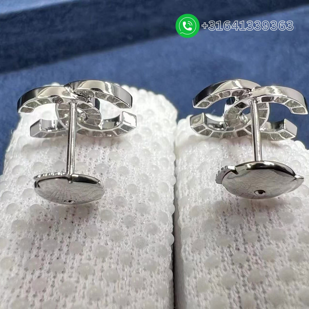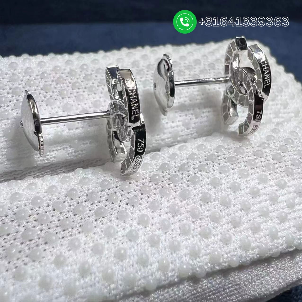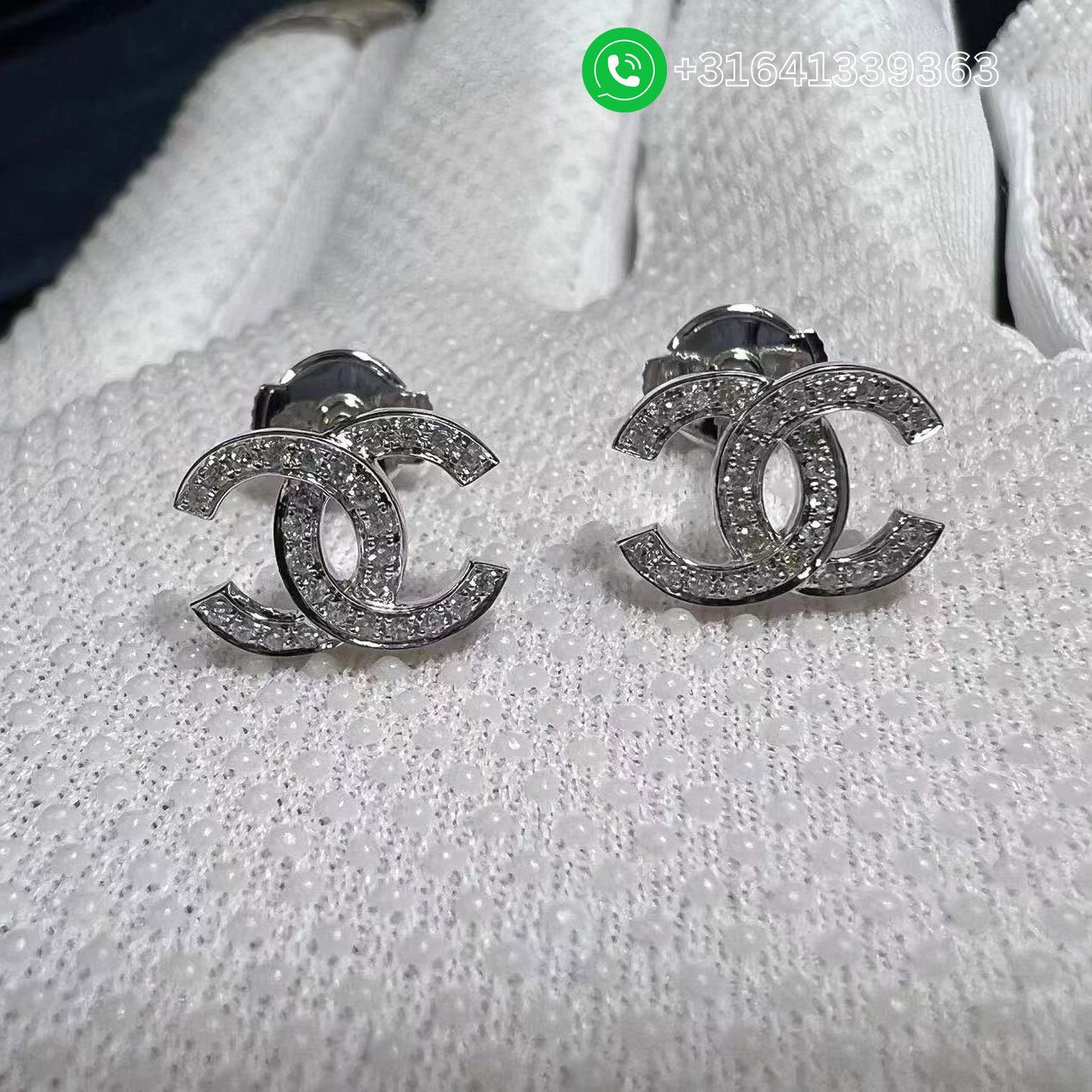 Chanel CC Logo Small Version 18k White Gold Diamond Earrings
