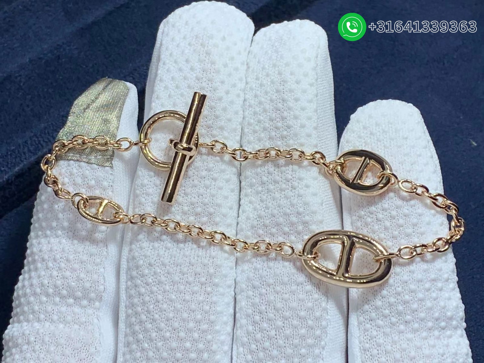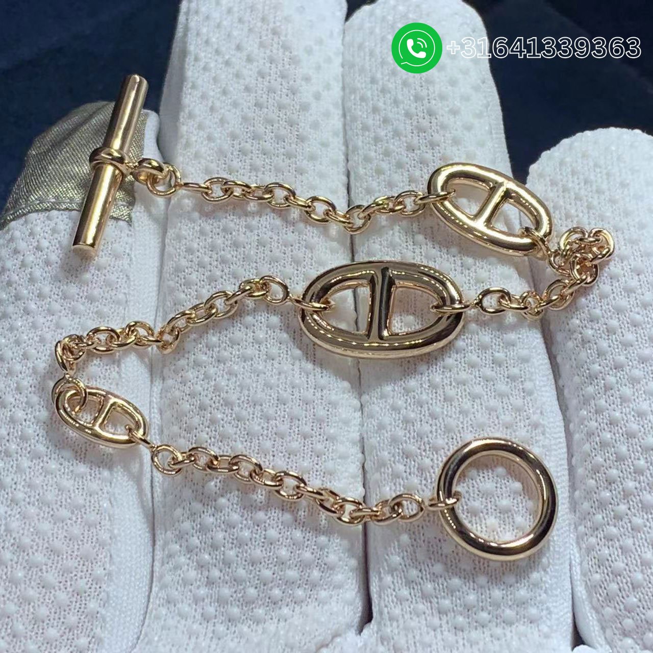 This chic Hermes bracelet from the Farandole collection features a chain and oval link design crafted in 18k rose gold and completed with a toggle closure.