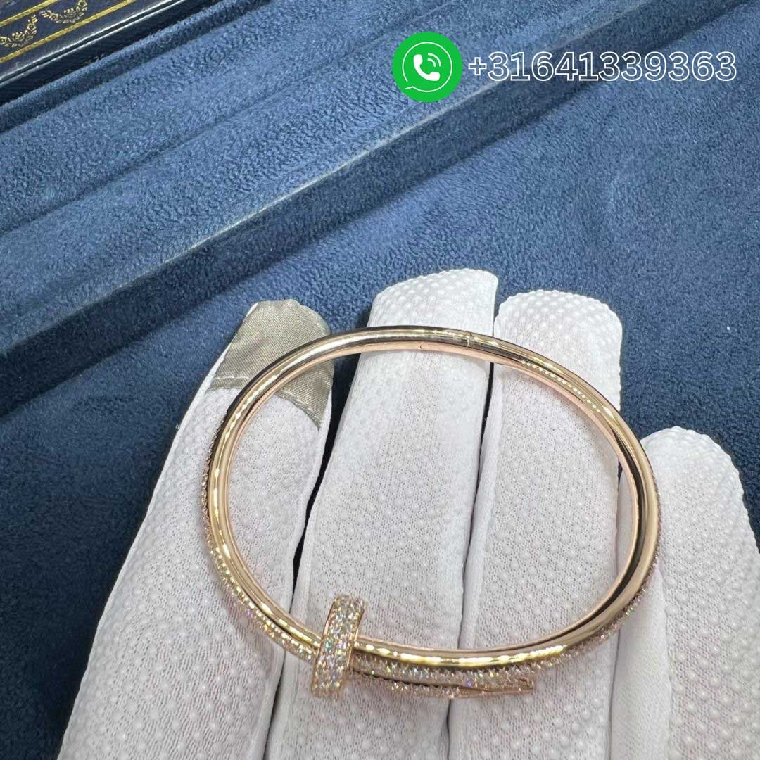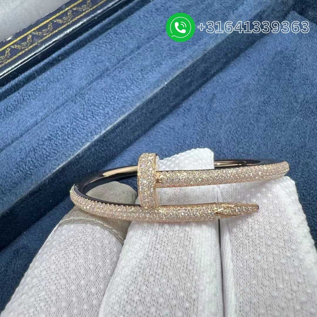 The Cartier Juste Un Clou bracelet became just as famous through its unique, nail-inspired frame. Made 18k rose gold, theCartier Juste un Clou 18k Rose Gold Pave Diamond Classic Nail Bracelet features a meticulously paved surface that radiates brilliance with every movement.