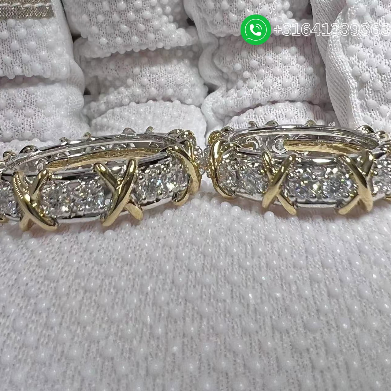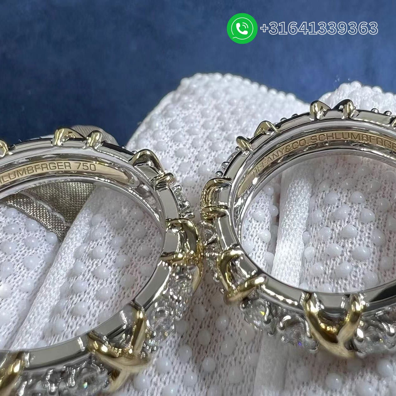 This iconic 16-stone Tiffany & Co. band ring was designed by Jean Schlumberger and features the classic X motif in 18k yellow gold alternating with an estimated 1.14 carats of brilliant-cut round diamonds set in fine platinum. Metal: 18K Yellow Gold and Platinum (weight is 15.74g ) Diamonds: 16 round brilliant diamonds 1.14ct Band Width: 6 mm Product number:60099365 Price: Please contact us vis WhatsApp or Email for factory direct selling price. Whatsapp: +31641339363 We offer 1:1 highest quality Tiffany jewelry customized,and factory direct selling,only cost 30%~60% of the original cost of these popular brands. We have more than 15 years experience focus on luxury jewelry making,and all items are made in real 18K yellow gold,white gold,pink gold,platinum,gemstones and genuine diamond with GIA certificate. What’s more,all items are come with top workmanship,good service,factory price,original packages and free shipping. It is easy for you to customize your own luxury jewelry with us: Send us the styles or products links you like, no matter whether it is a Cartier LOVE bracelet, a Bvlgari Serpenti Ring, Van Cleef & Arpels Magic Alhambra necklace, or Graff Bracelet, even your own design. And let us know your desired sizes. Pay 50% as deposit, or full payment. The balance needs to be cleared before shipping. Wait about 7 days for the production. For some complicated styles, it takes longer time. We take pictures of the finished jewelry for your confirmation, and get the balance payment. Jewelry ship to you. A tracking number will be provided. It takes about 3 to 5 days for you to get the jewelry.