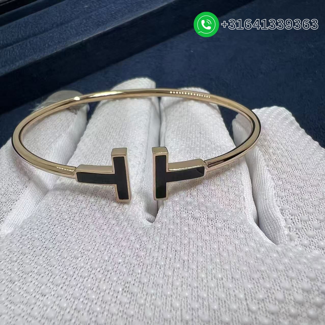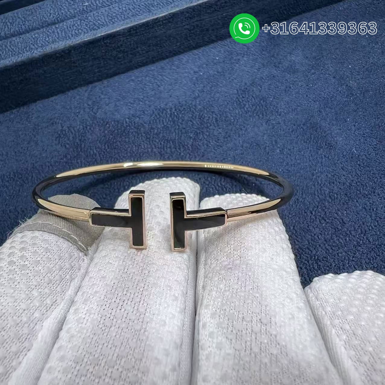 Tiffany 18k Rose Gold Black Onyx T Wire Bracelet 64028677