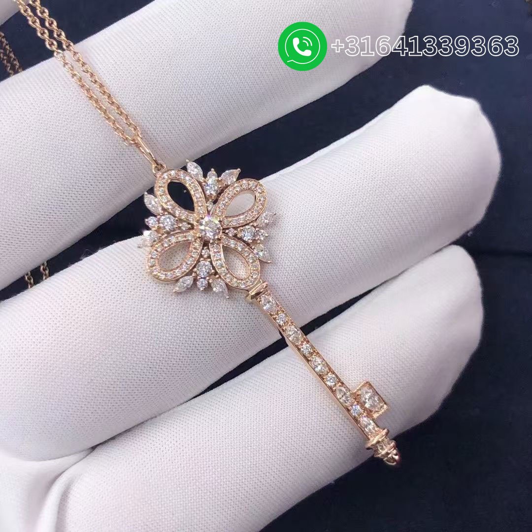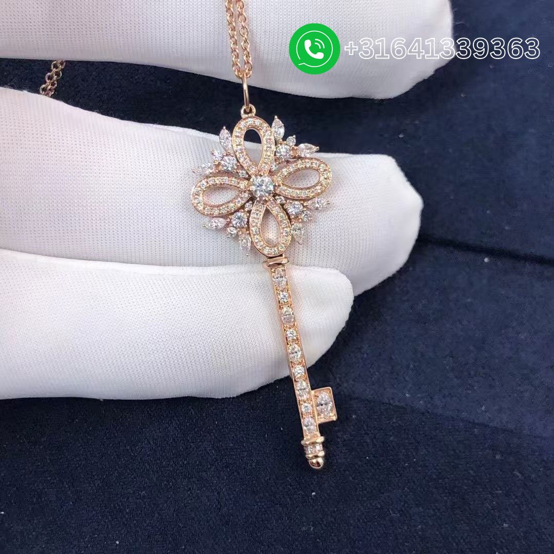 Tiffany 18K Rose Gold Diamonds Victoria Key Pendant Necklace