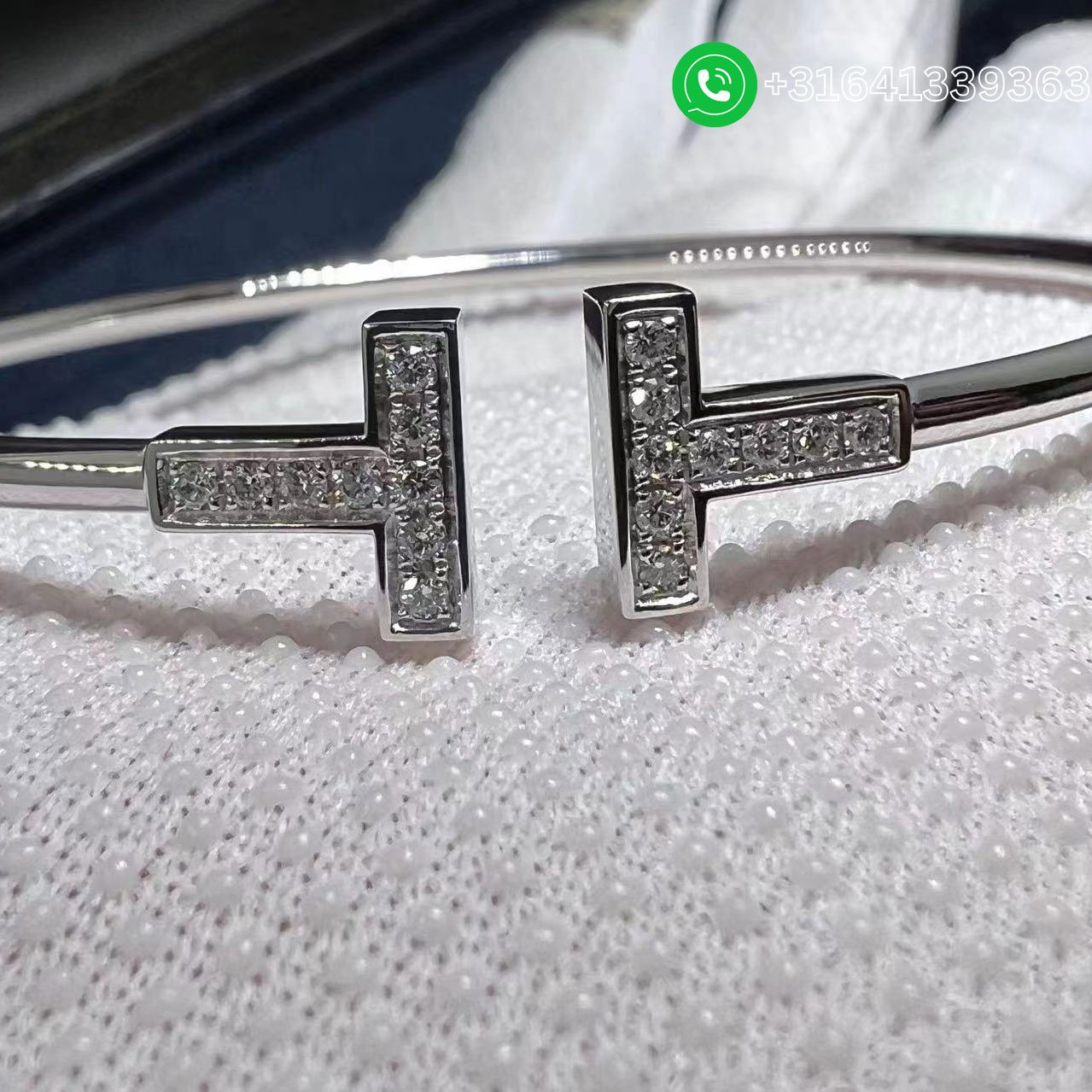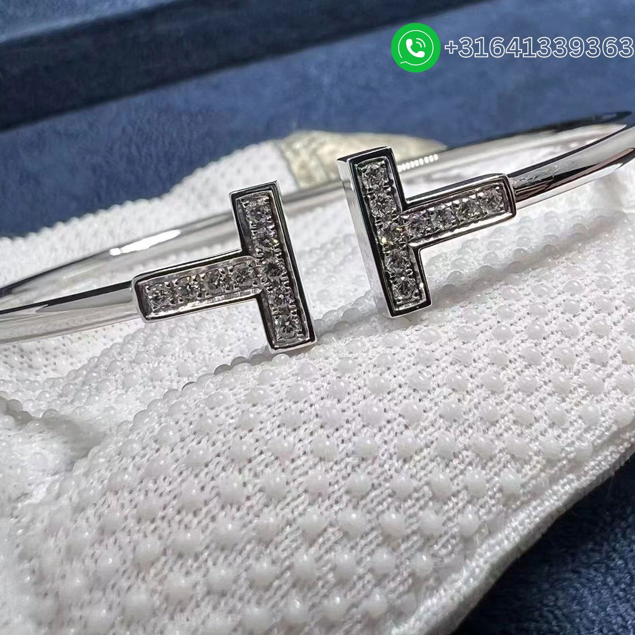 Tiffany 18k White Gold Diamond T Wire Bracelet
