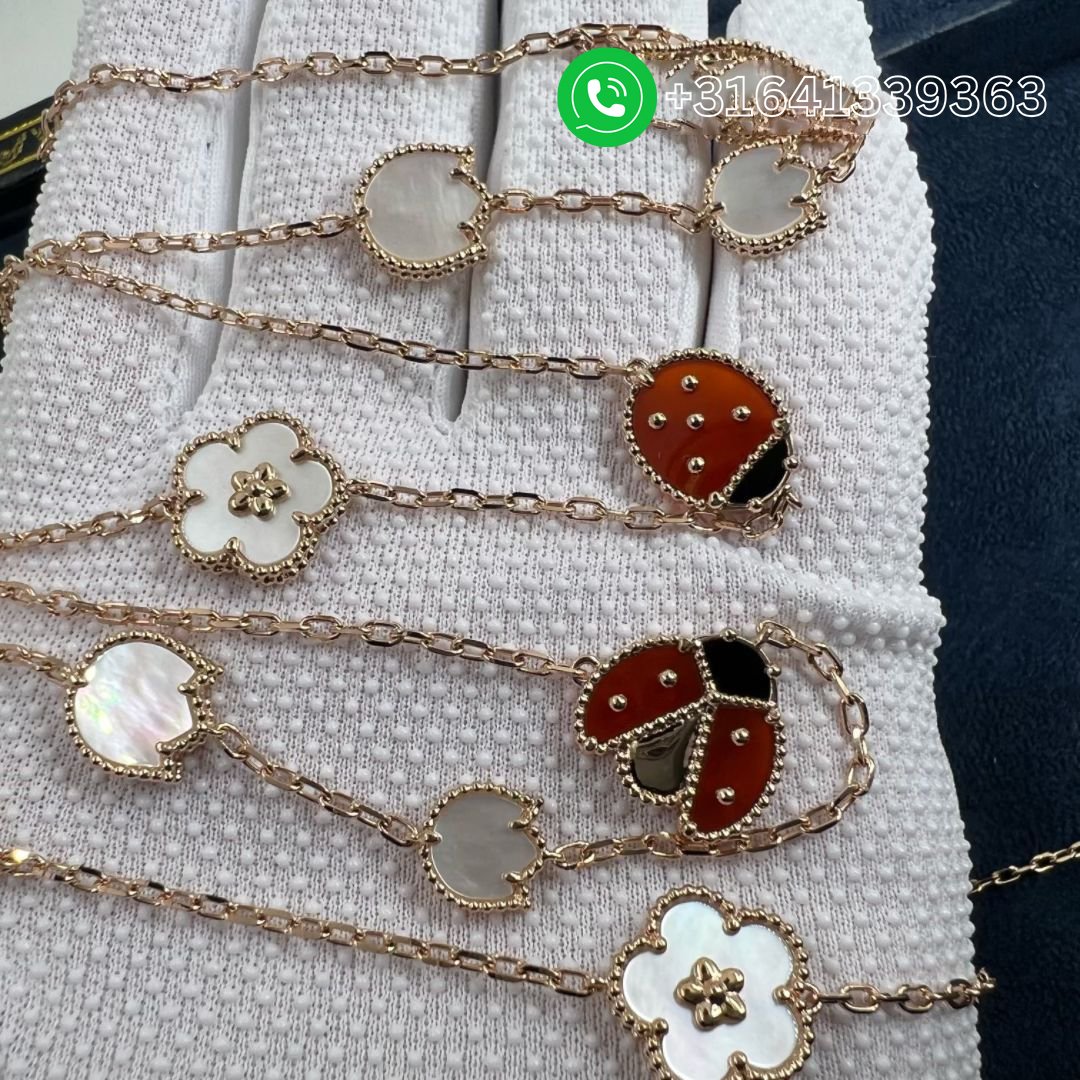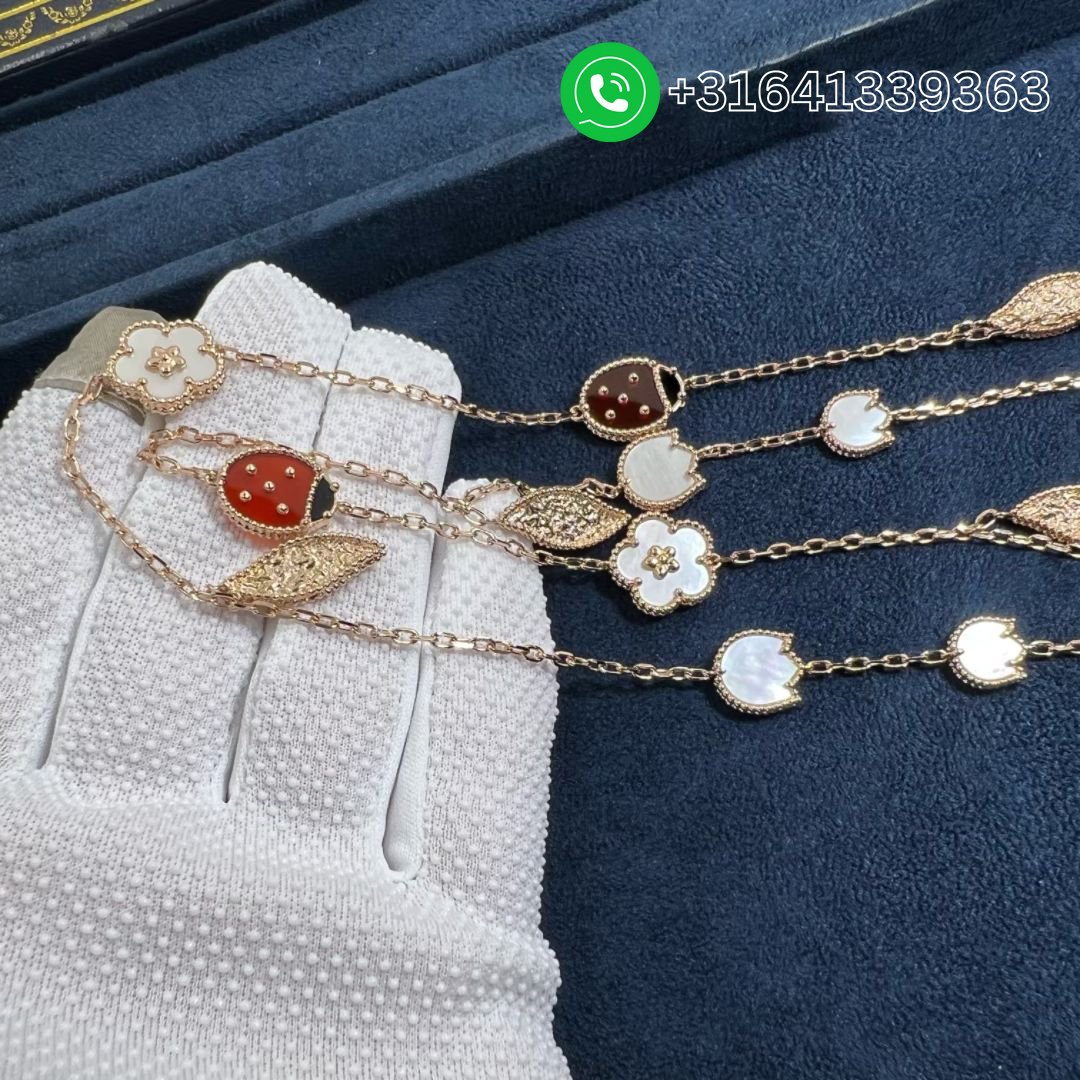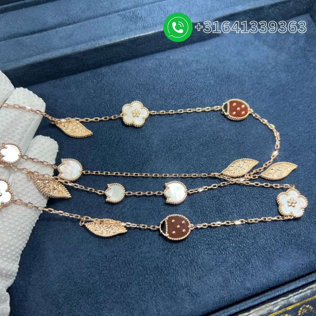 Van Cleef & Arpels 18K Rose Gold Mother of Pearl Carnelian Onyx 15 Motifs Lucky Spring Long Necklace VCARP7RT00