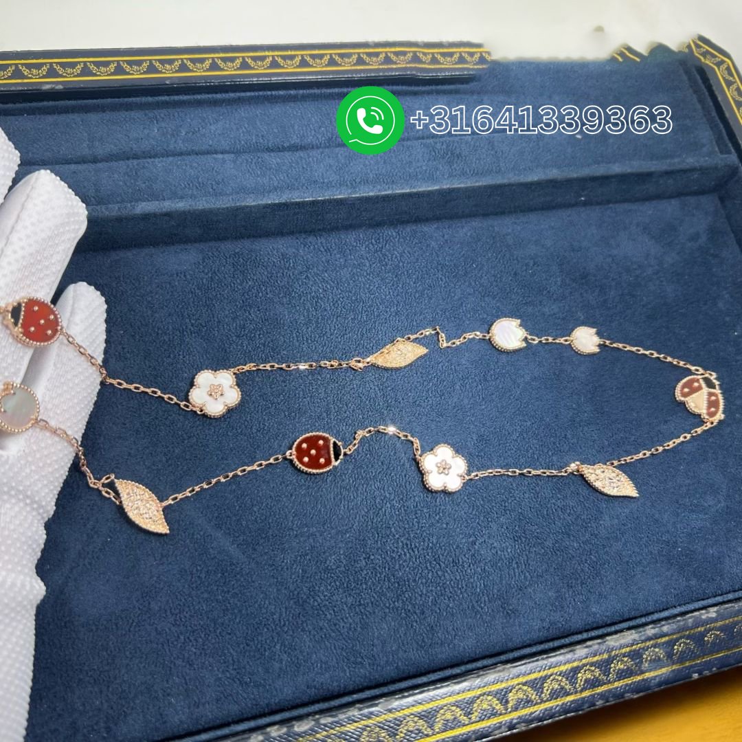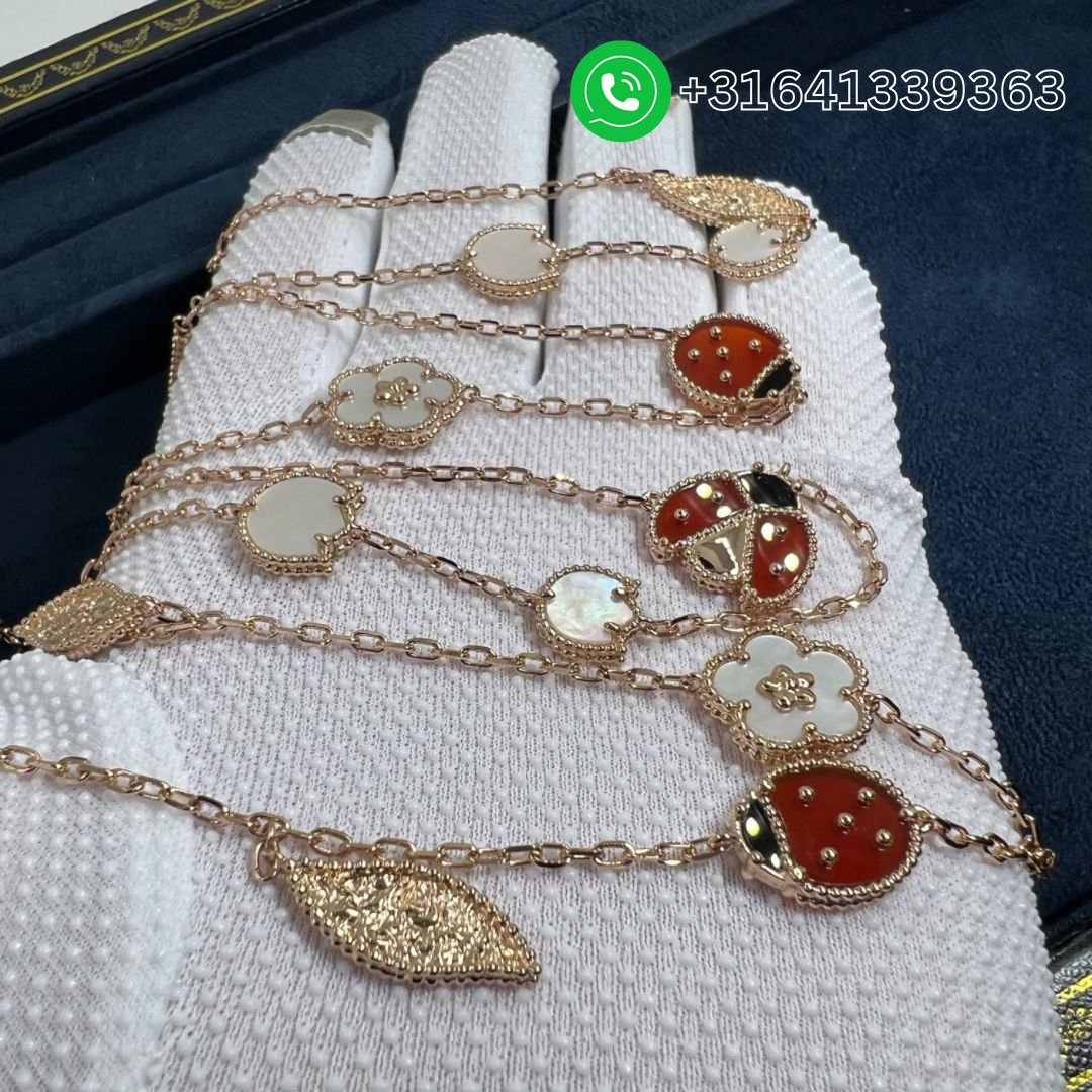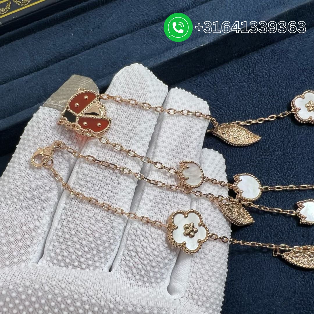 Van Cleef & Arpels 18K Rose Gold Mother of Pearl Carnelian Onyx 15 Motifs Lucky Spring Long Necklace VCARP7RT00