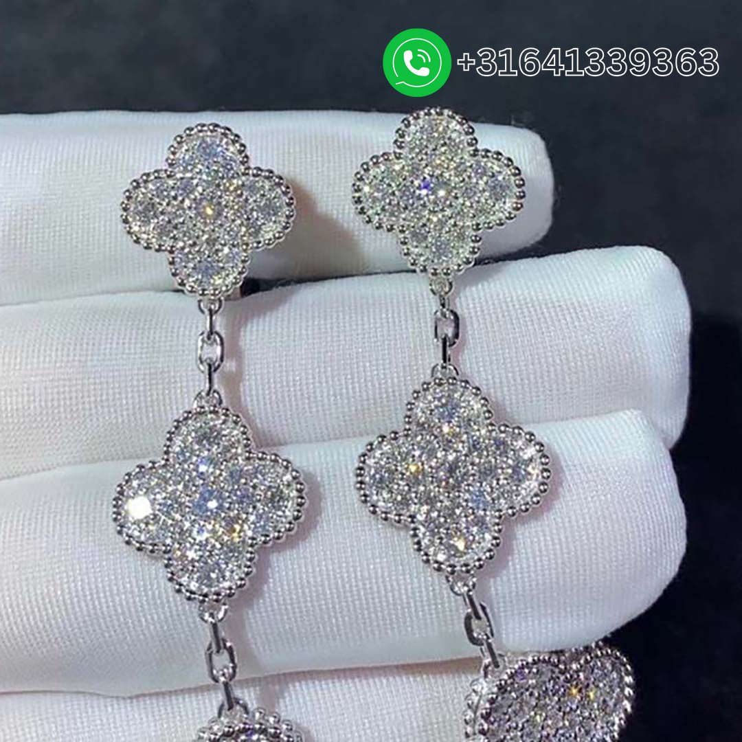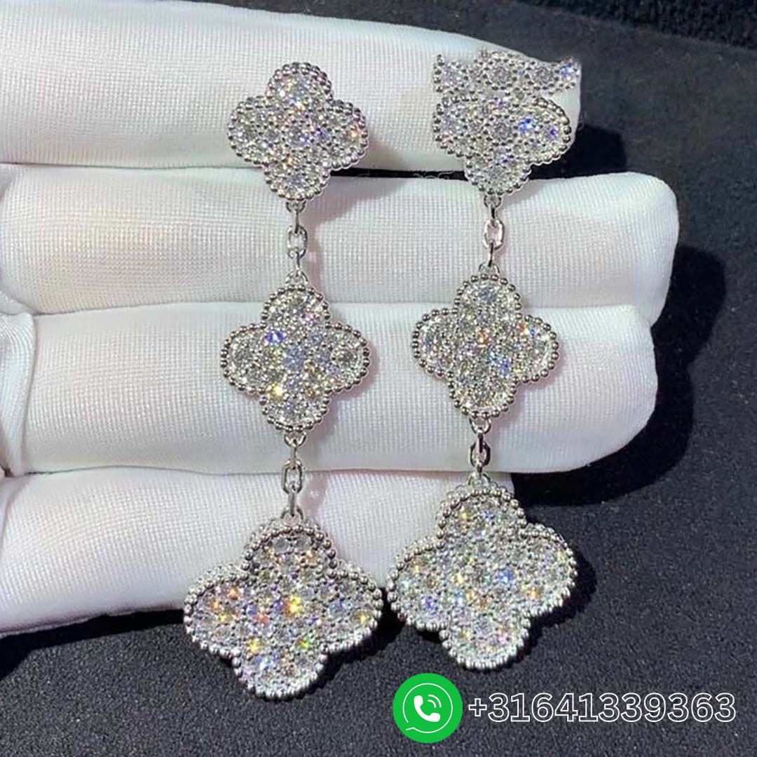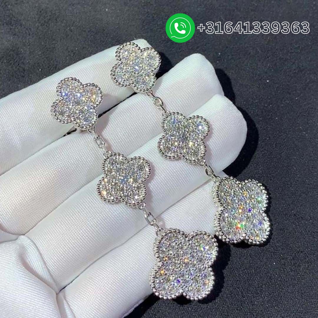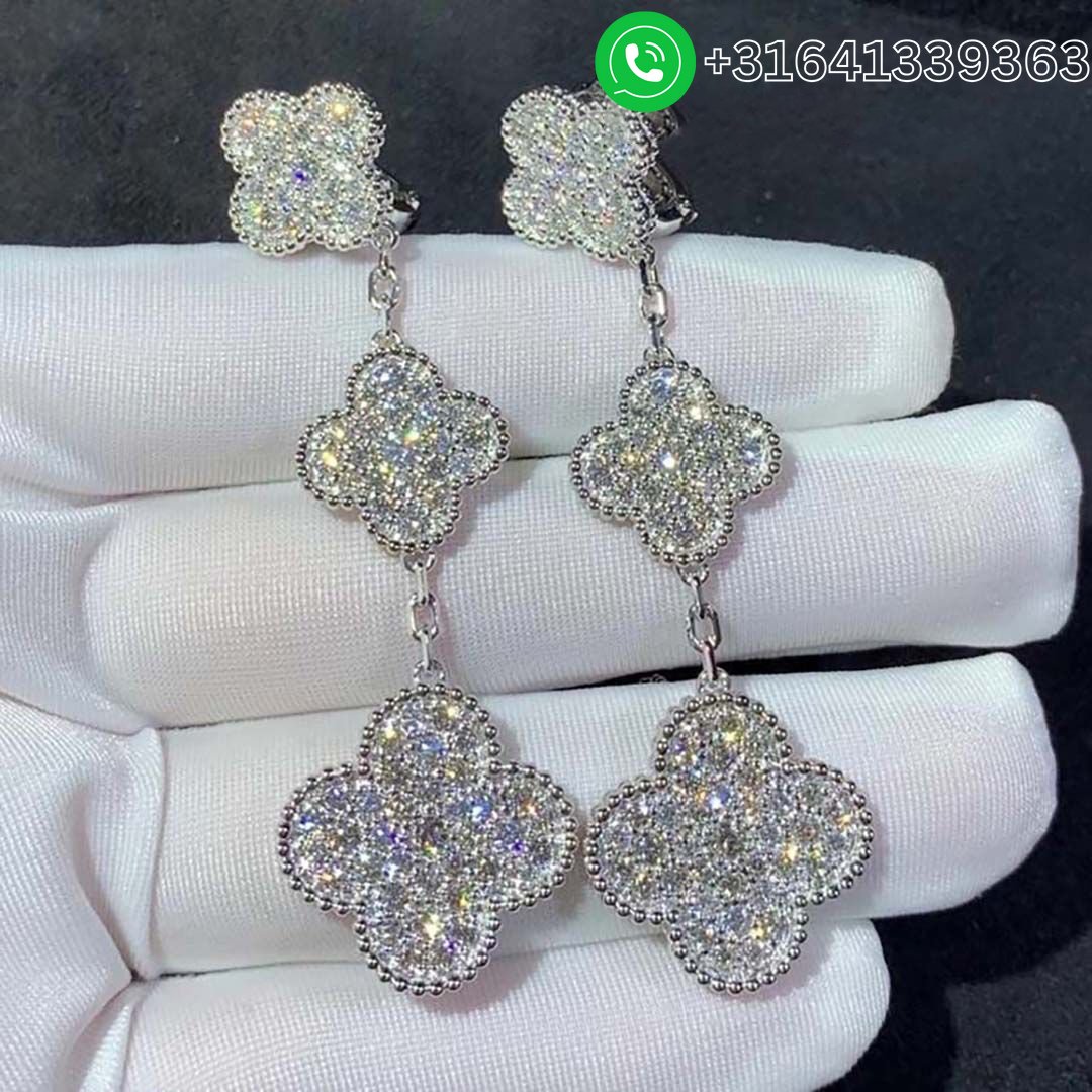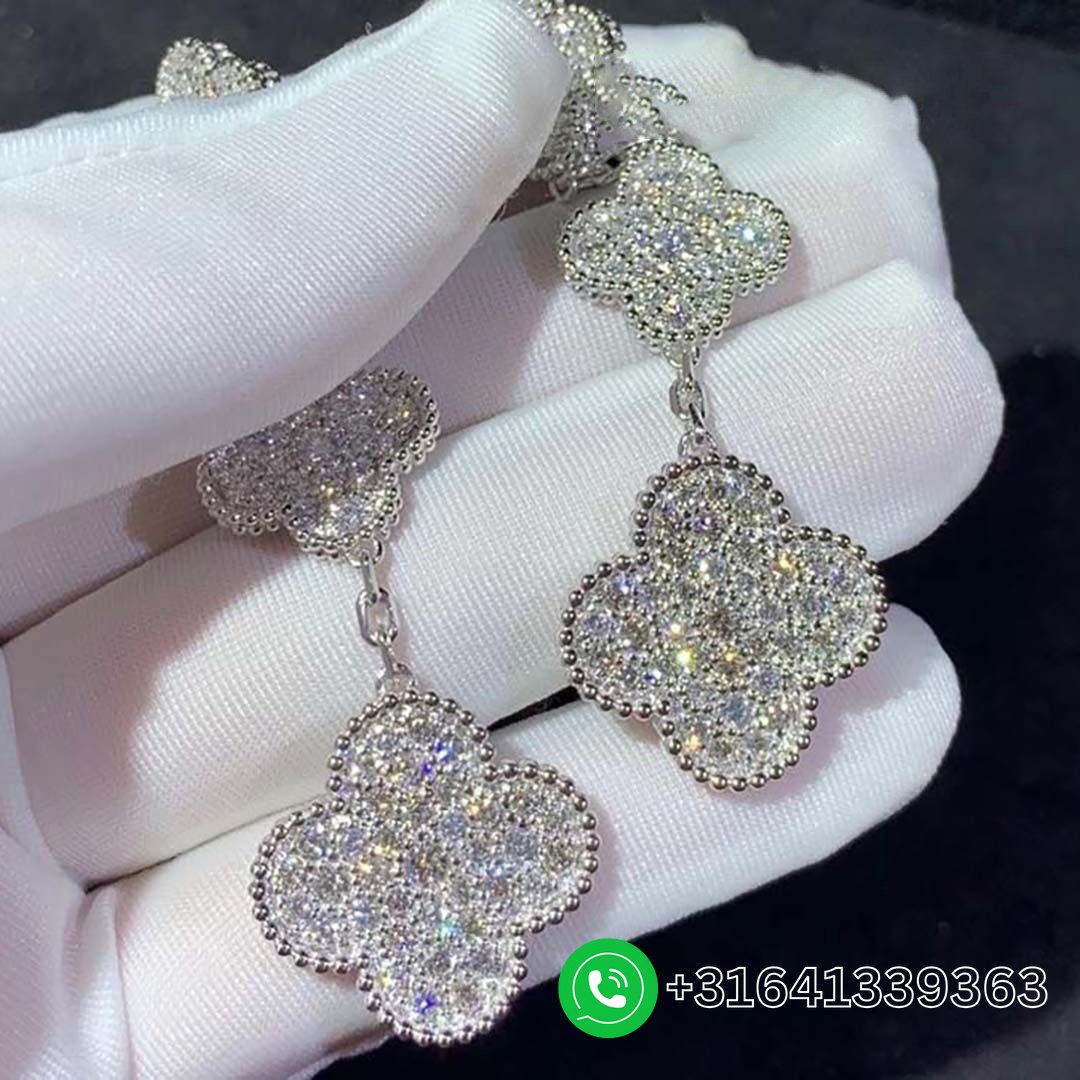 Van Cleef & Arpels 18K White Gold Full Diamond 3 Motifs Magic Alhambra Earrings VCARN9MR00