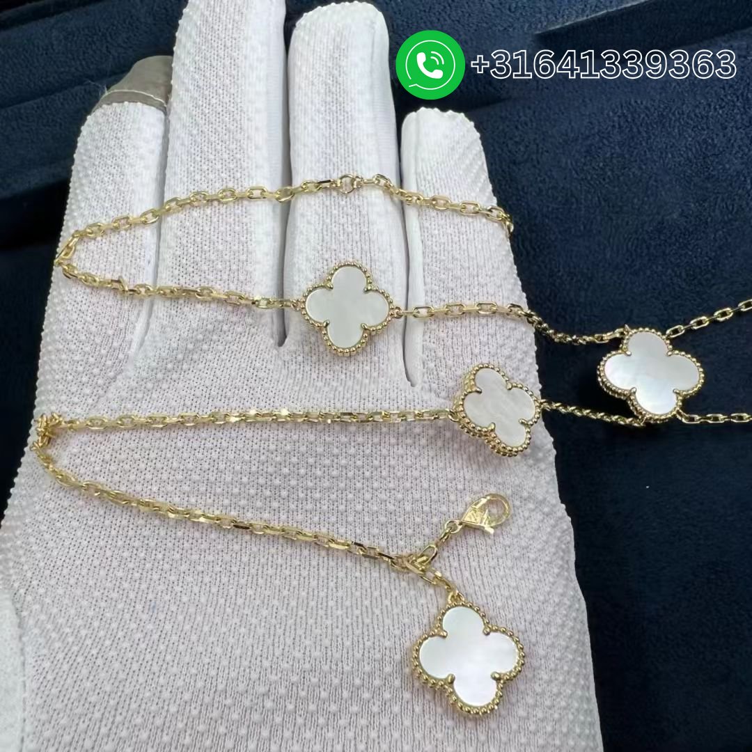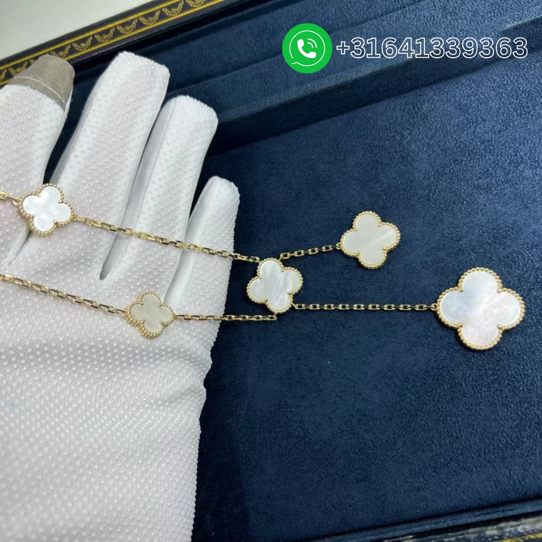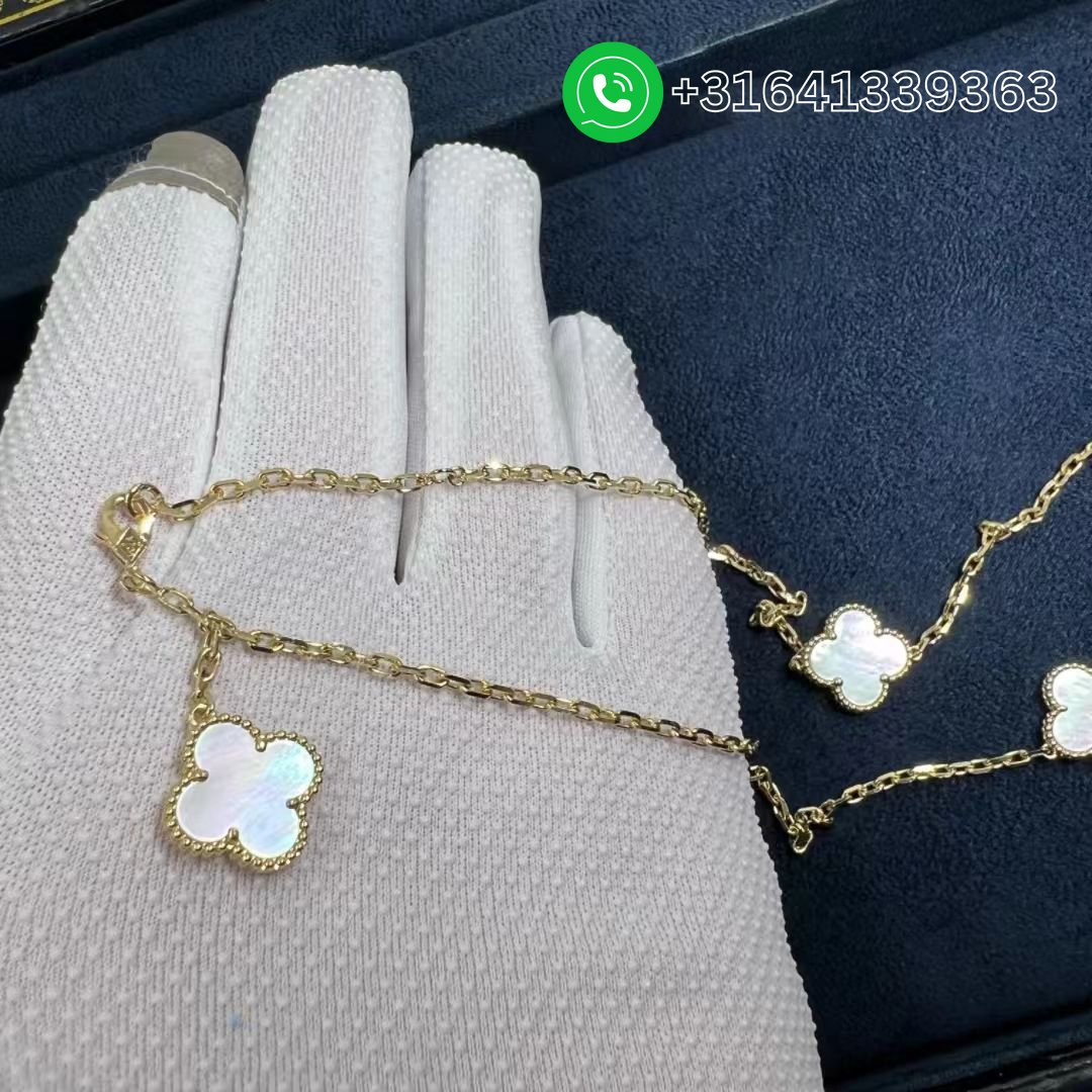 Van Cleef & Arpels 18k Yellow Gold 6 Motifs Mother of Pearl Magic Alhambra Necklace VCARD79100