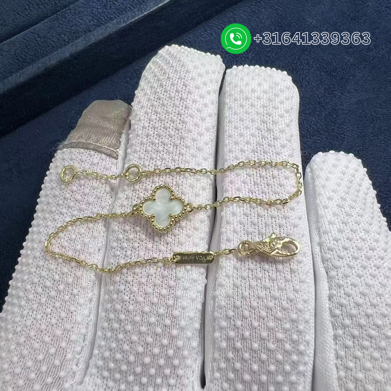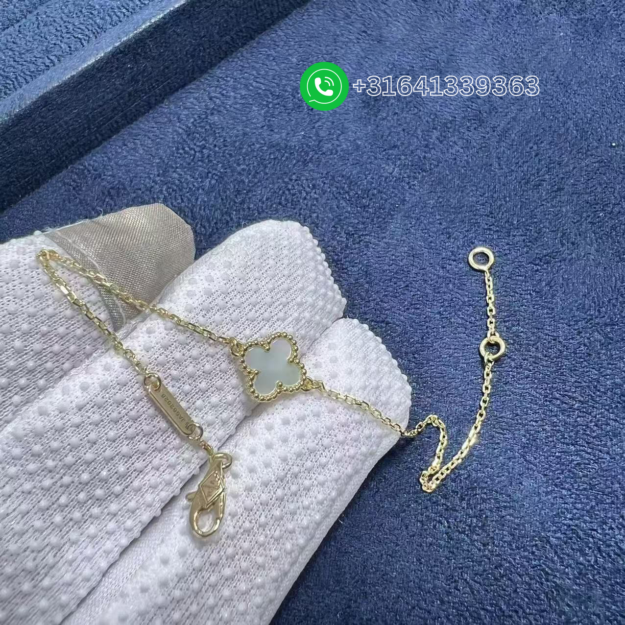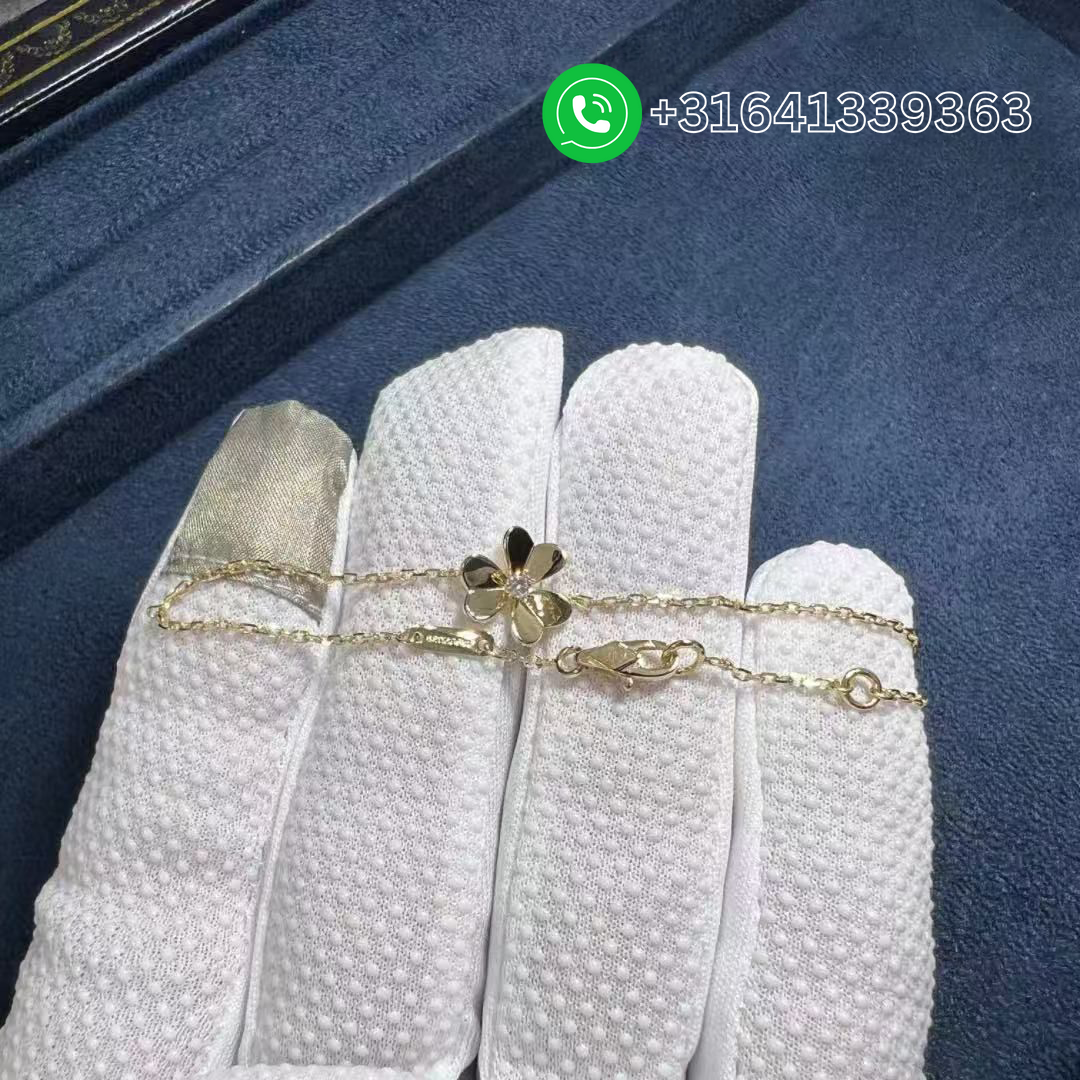 Luxury and the beauty of nature meet with this stunning Van Cleef & Arpels 18k Yellow Gold and white mother-of-pearl Sweet Alhambra Bracelet. This emblematic and celebrated clover bracelet has been a favorite among fans and is made of gorgeous carnelian stone and hangs delicately from an 18k yellow gold chain. This gorgeous bracelet is perfect for everyday wear and will always be a timeless and wearable work of art. Metal: 18k Yellow gold (Wight 2.1g) Stones: 1 white mother-of-pearl Motif Size: 9mm Chain length: 6.69 inches (17cm) REFERENCE: VCARF68800 Clasp: Hallmark clasp, extra small model in yellow gold Factory Wholesale Price: Whatsapp for price Whatsapp: +31641339363 Are you a fan of the style luxury ring, earrings, bracelet or necklace? They are among the top luxury products in the world. Most people like them, but not able to afford them. Now, ManyLuxe jewelry offers the custom jewelry making service that you can let us know what you like and your special requirements, we will make the jewelry for you. The same gold, the same gemstones, the same diamonds and the same designs. With our top craftmanship and direct factory selling, you will only need to pay small part of money to get a style jewelry that you are not dare to imagine before. We guarantee all of your products to be 100% authentic, and that what you see is absolutely what you get. Continuing to serve our customers and gain trust in our name is our mission. Our expert photographers take much time and care to capture the true beauty of the items we sell. What you see pictured is the actual item you will receive. Every detail possible can be seen in our pictures and we are proud of that, we here have nothing to hide. We want to show you every beautiful angle and edge of our inventory so you fall in love with the piece that’s just right for you.