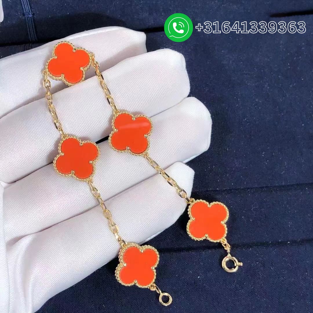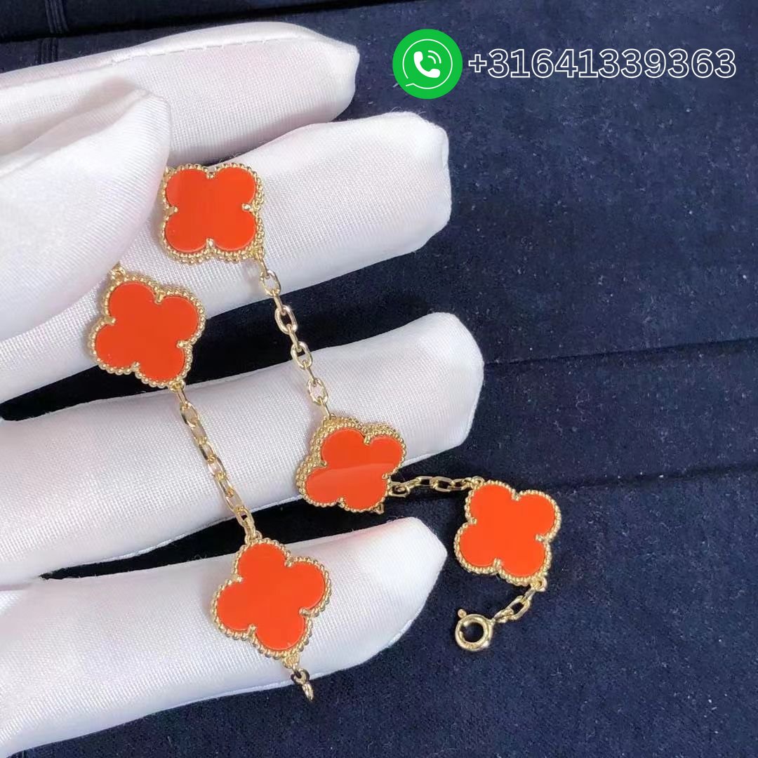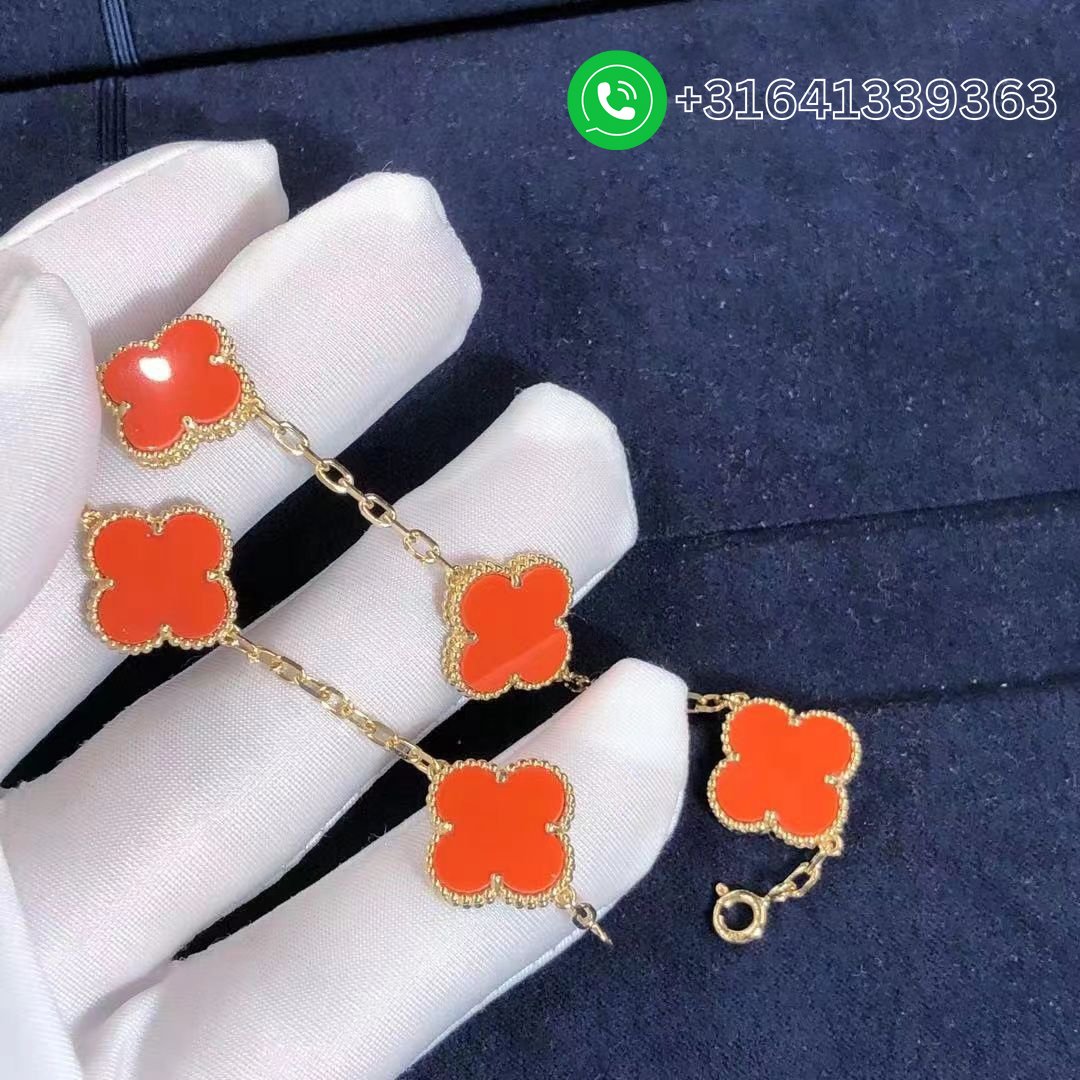 Van Cleef & Arpels 18K Yellow Gold Coral 5 Motifs Vintage Alhambra Bracelet