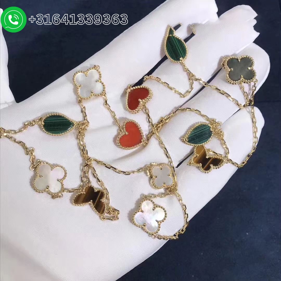 Van Cleef & Arpels 18k Yellow Gold Gems 12 Motifs Lucky Alhambra Long Necklace VCARD80100