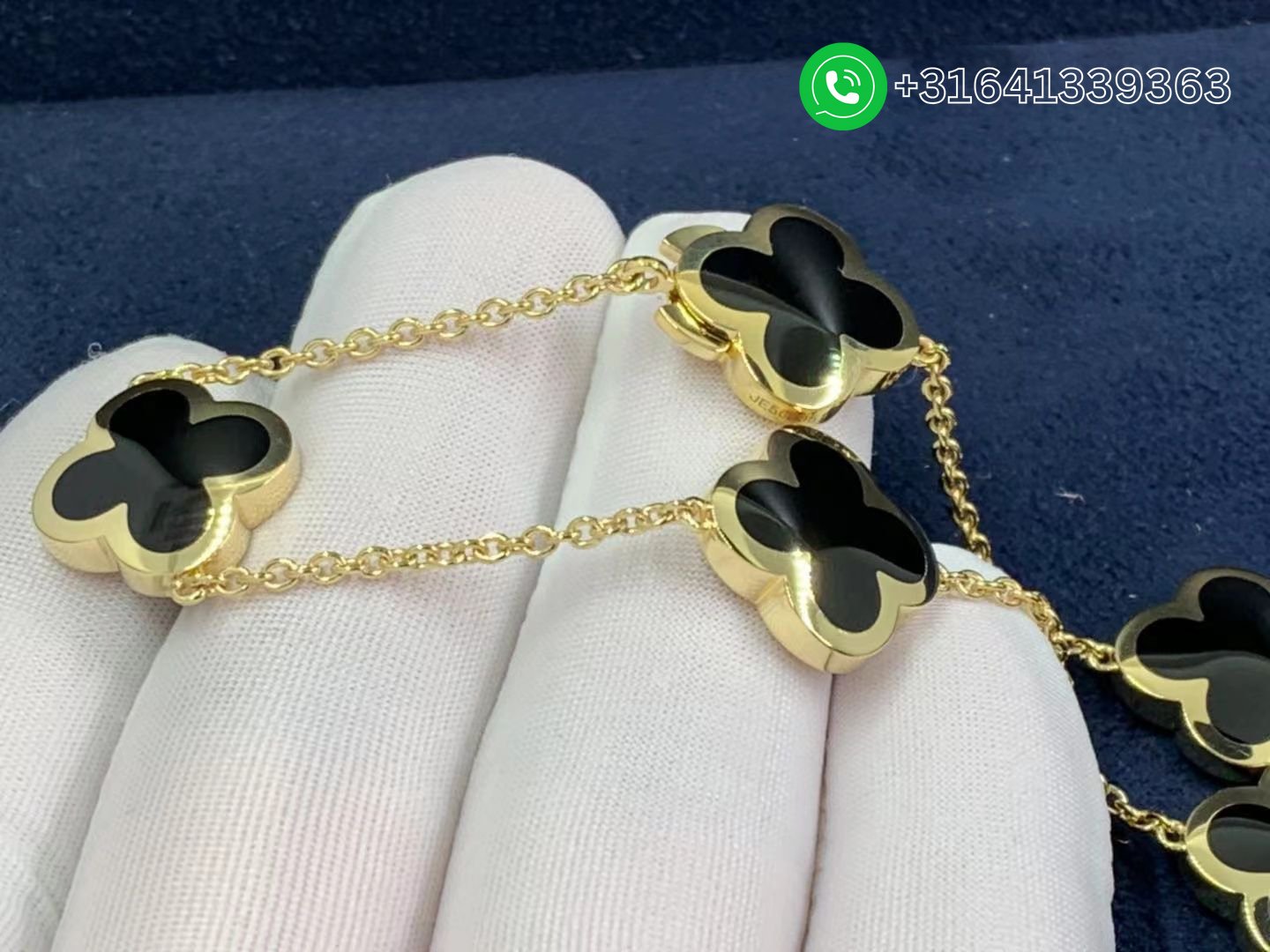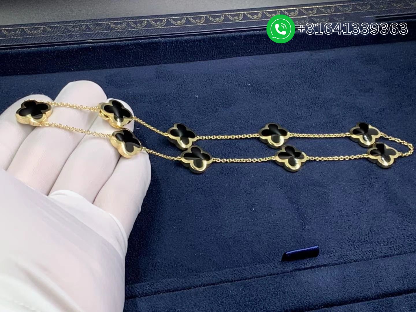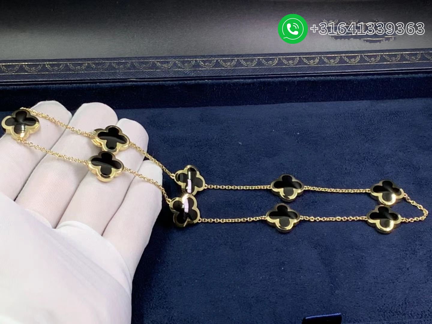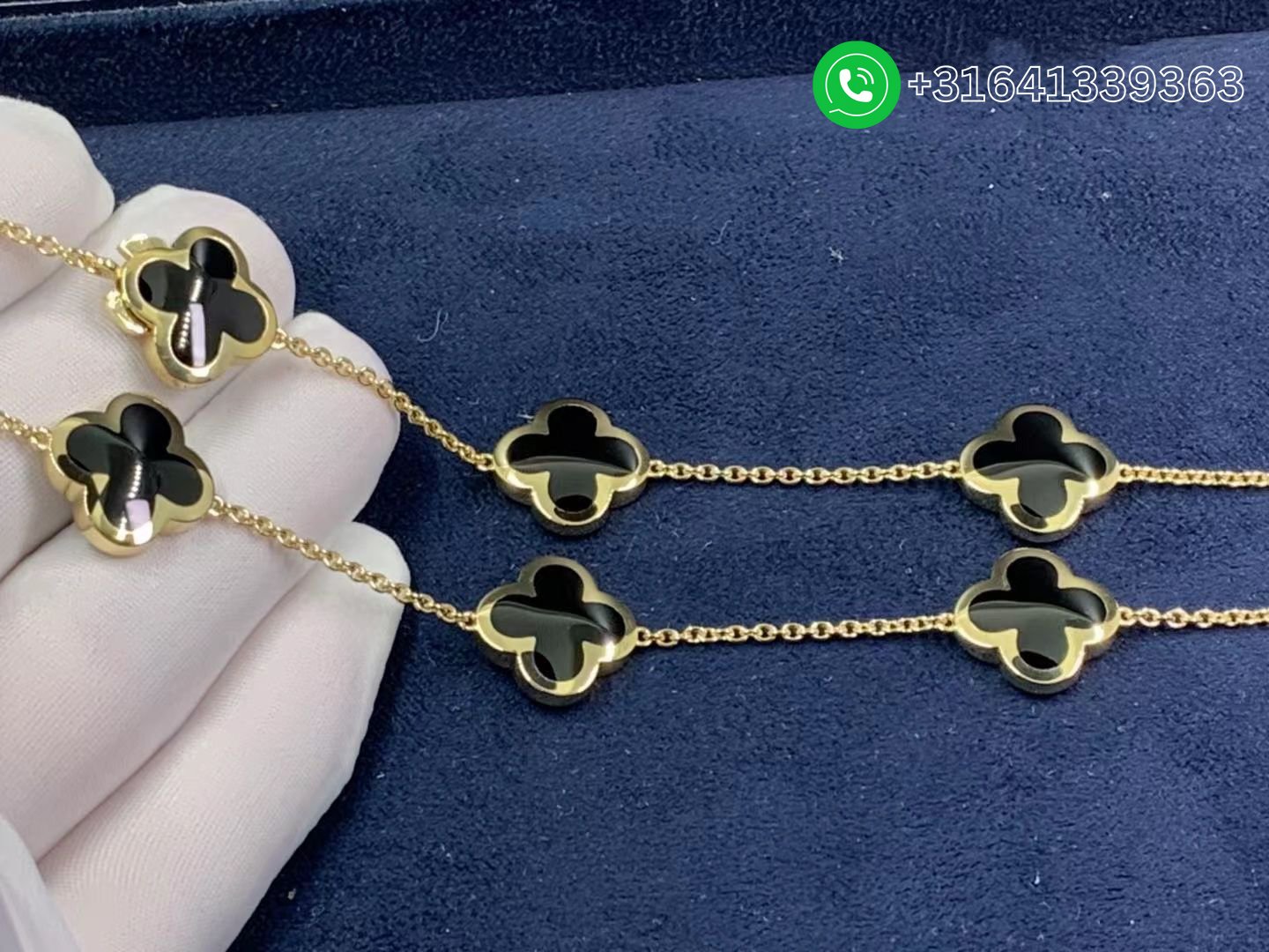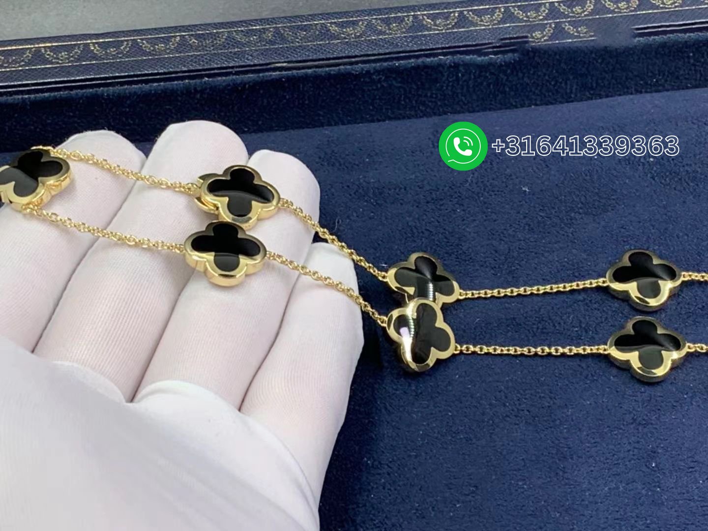 Van Cleef & Arpels 18K Yellow Gold Onyx Pure Alhambra 9 Motif Long Necklace